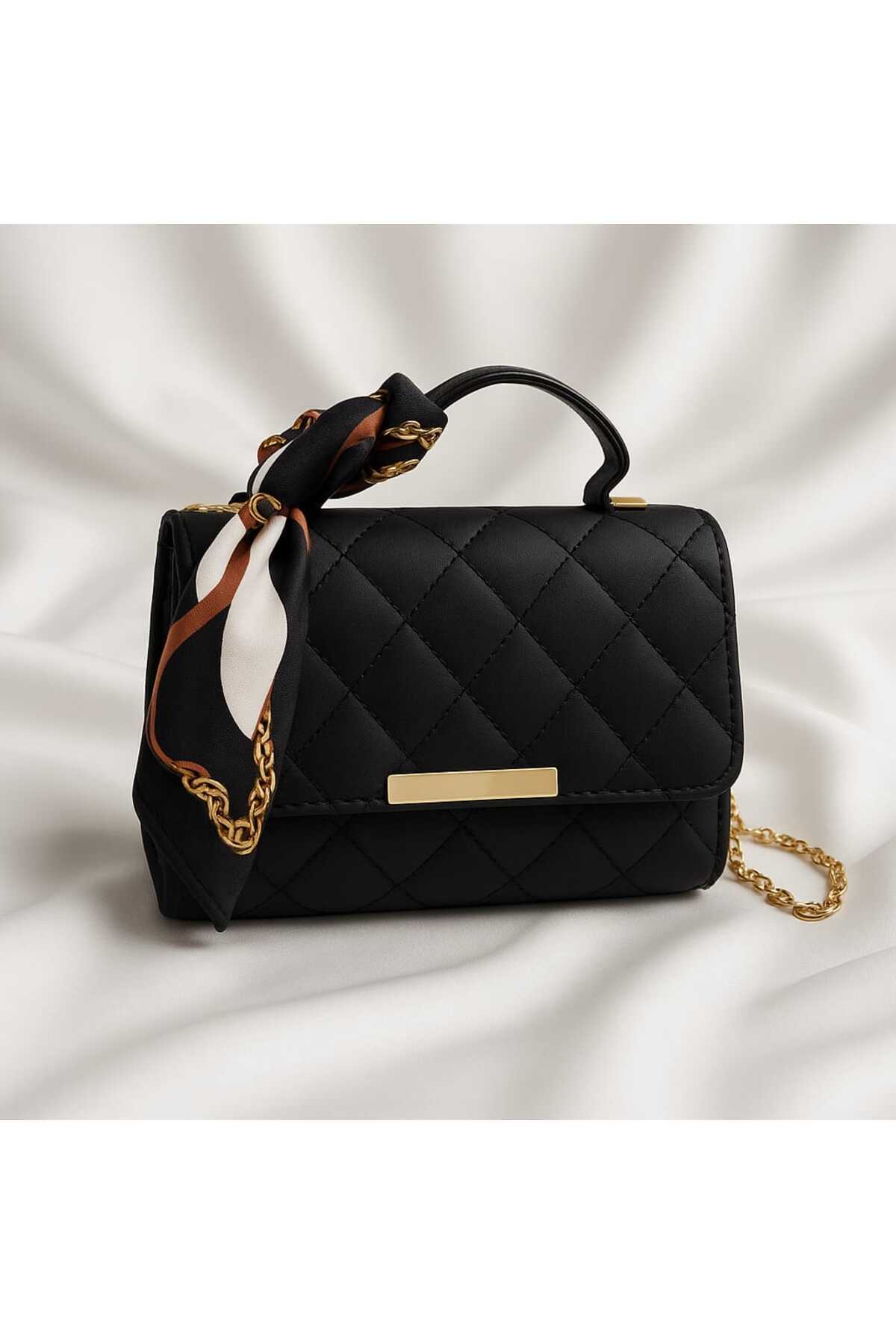 Klasik Kapitone Mini Çanta – Altın Zincirli, Fular Detaylı Klasik Kapitone Mini Çanta – Altın Zincirli, Fular Detaylı 928282277373 Standart