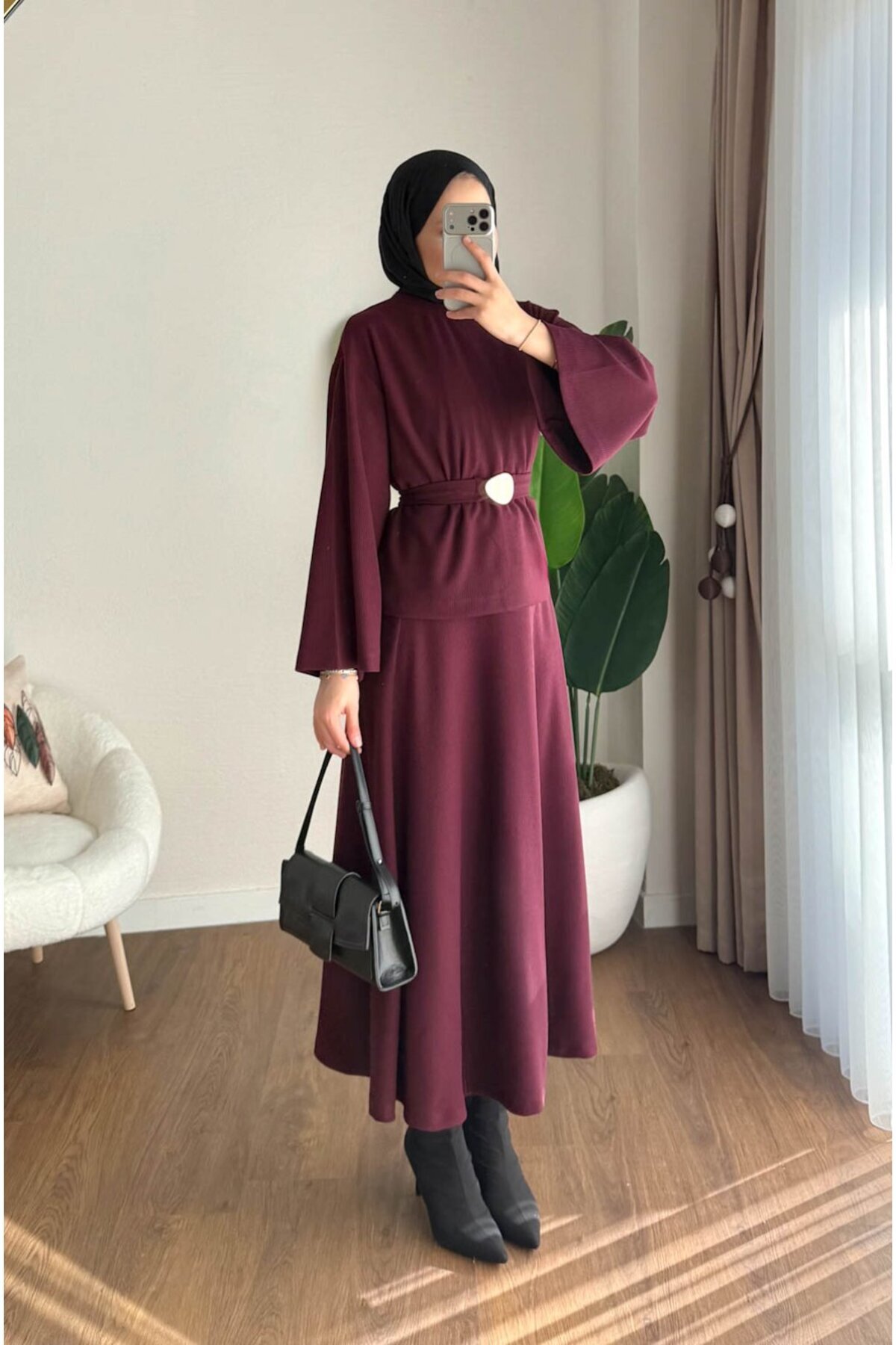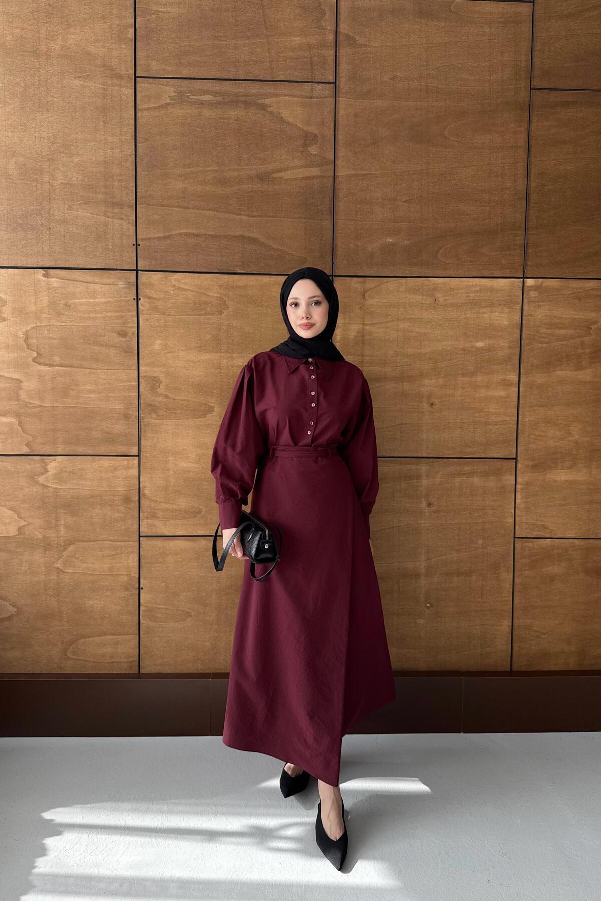 Kadın Selanik Kumaş Kemer Detaylı Etekli Takım - Kahverengi Kadın Selanik Kumaş Kemer Detaylı Etekli Takım - Kahverengi R25144 XL