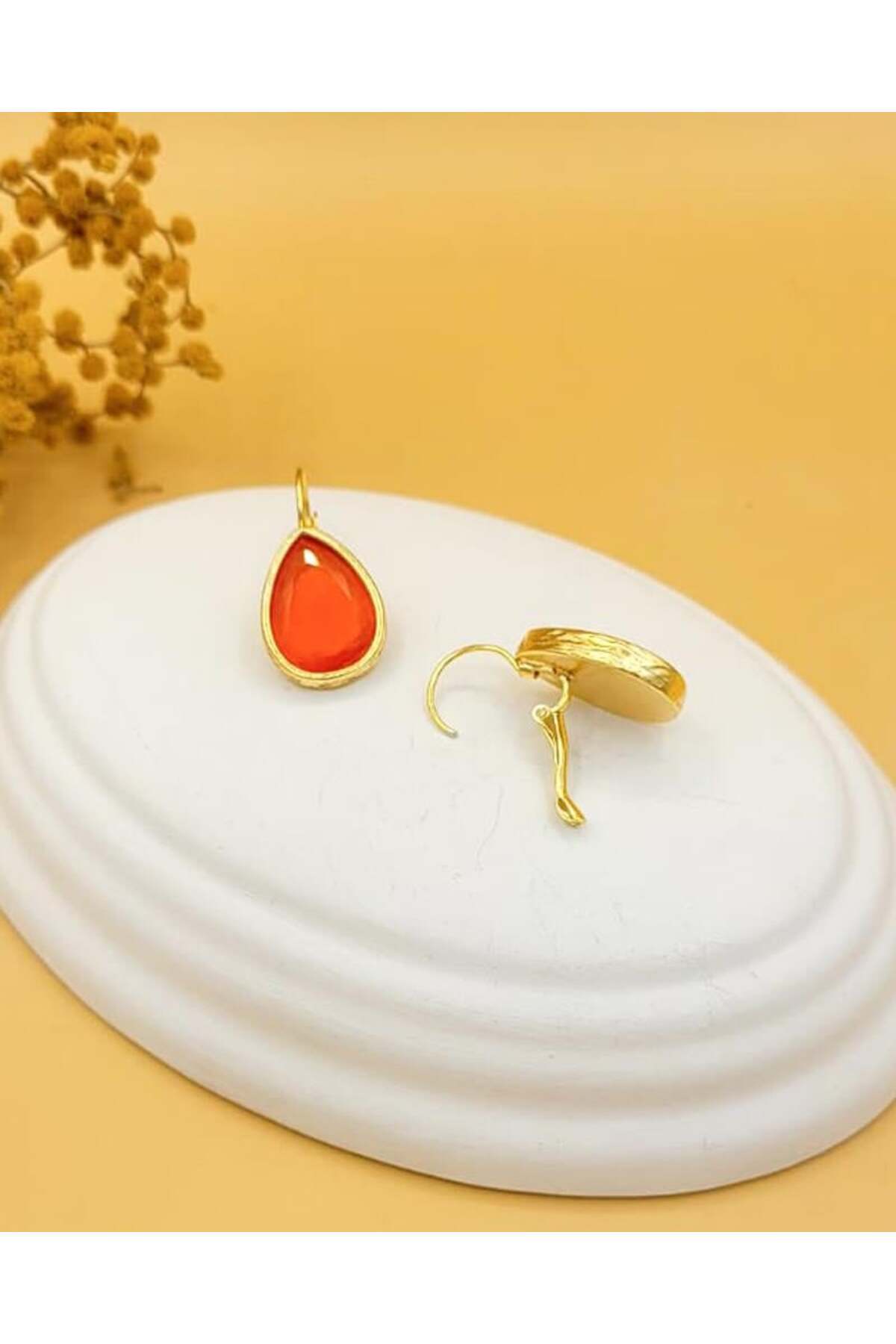 Turuncu Kedi Gözü Sıvama Altın Kaplama İri Damla Küpe Turuncu Kedi Gözü Sıvama Altın Kaplama İri Damla Küpe NV2359 تک سایز