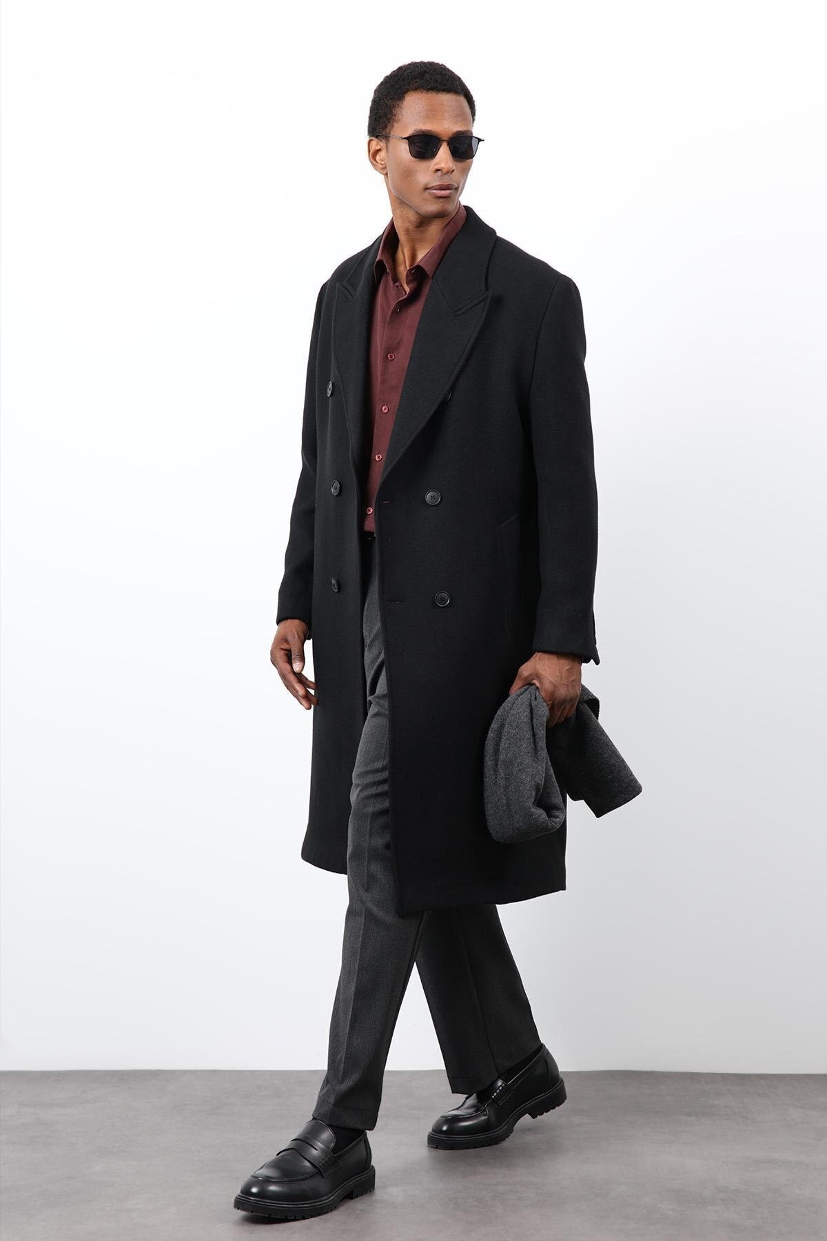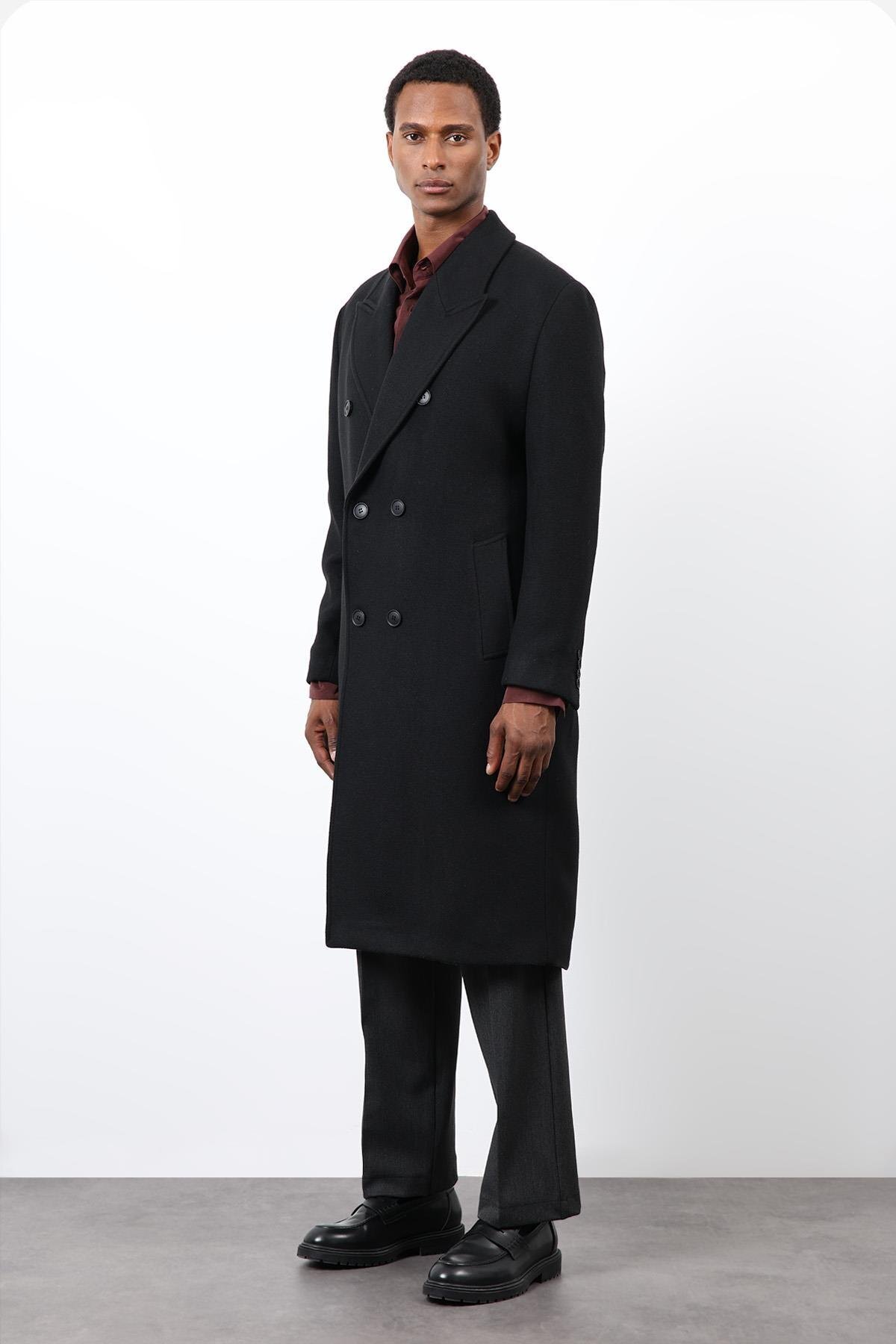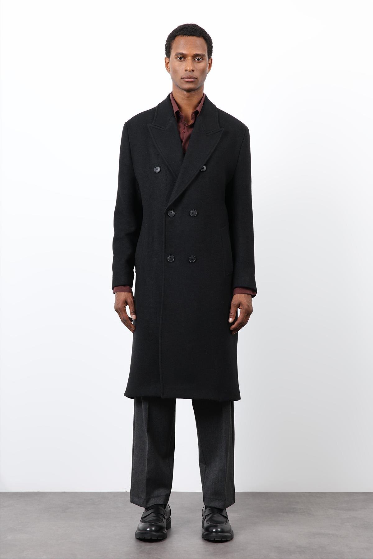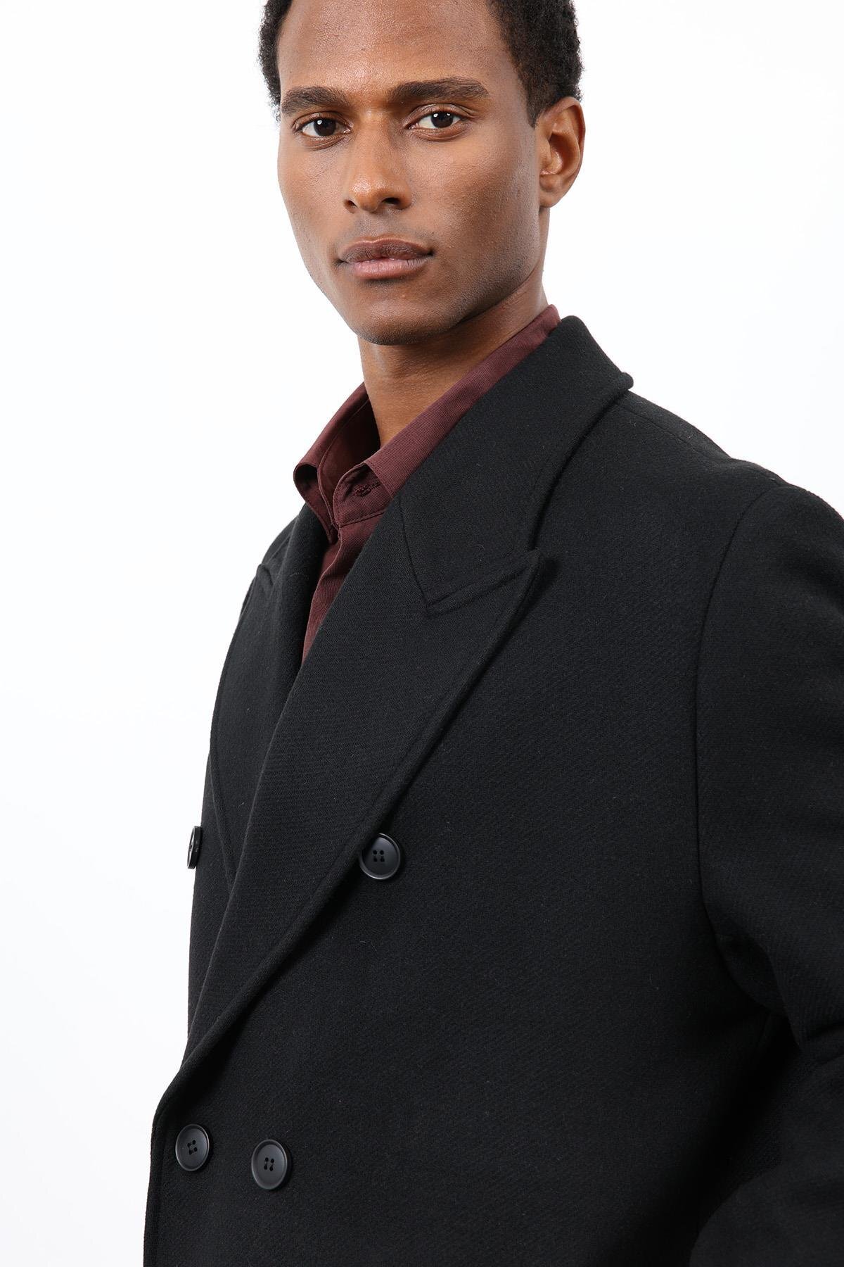 Siyah Yün Karışımlı Kruvaze Erkek Kaban Siyah Yün Karışımlı Kruvaze Erkek Kaban A25Y6199 XL