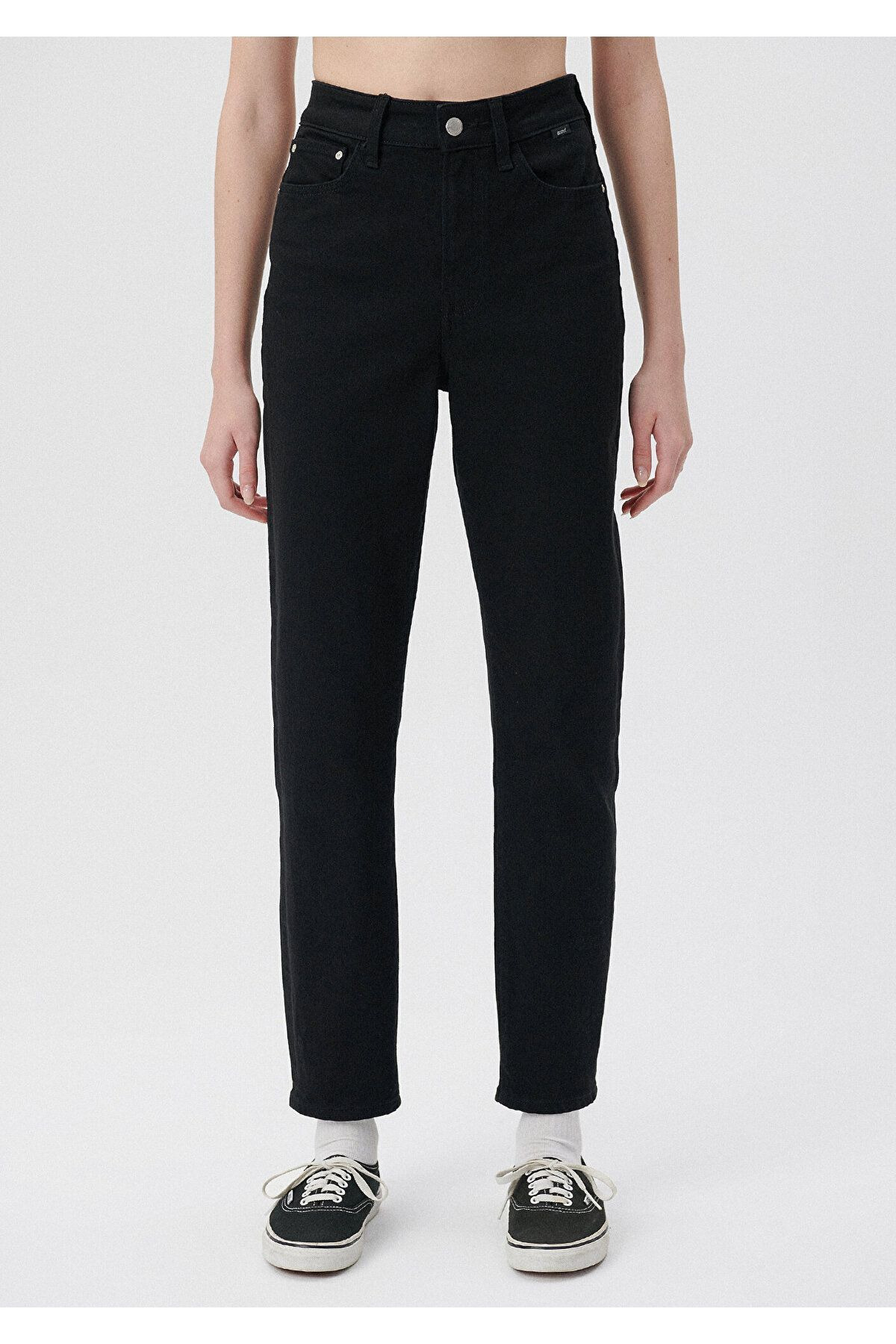 Kadın Siyah Beli Lastikli Jean Kadın Siyah Beli Lastikli Jean momjeans001 38