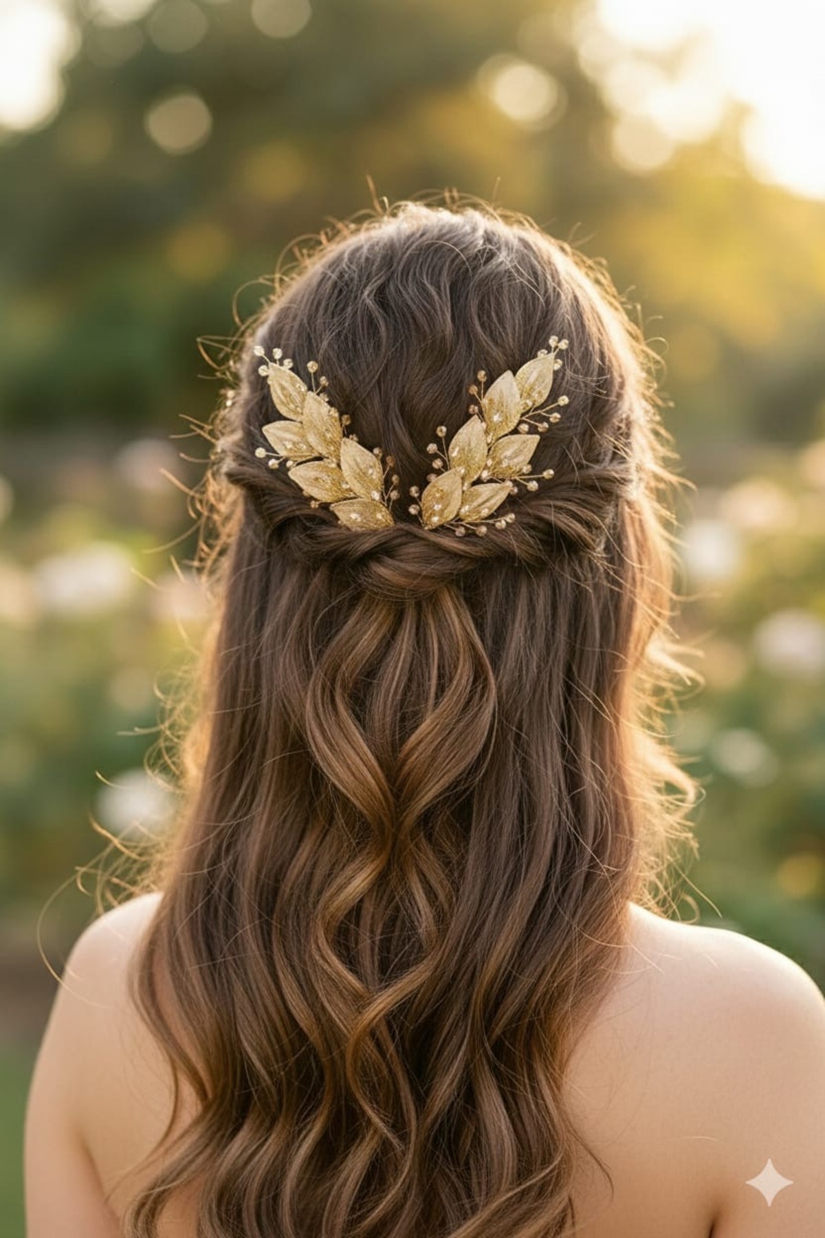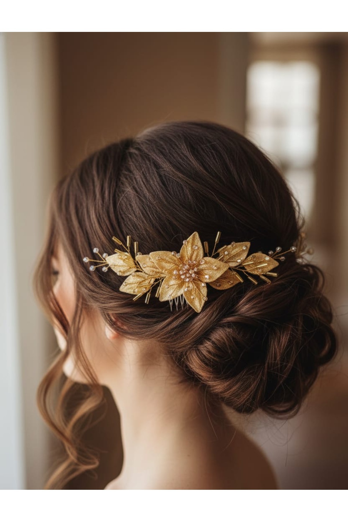 Kristal Ve Tül Yaprak İşlemeli Söz Nişan Kına Tokası Kristal Ve Tül Yaprak İşlemeli Söz Nişan Kına Tokası MS-073 تک سایز