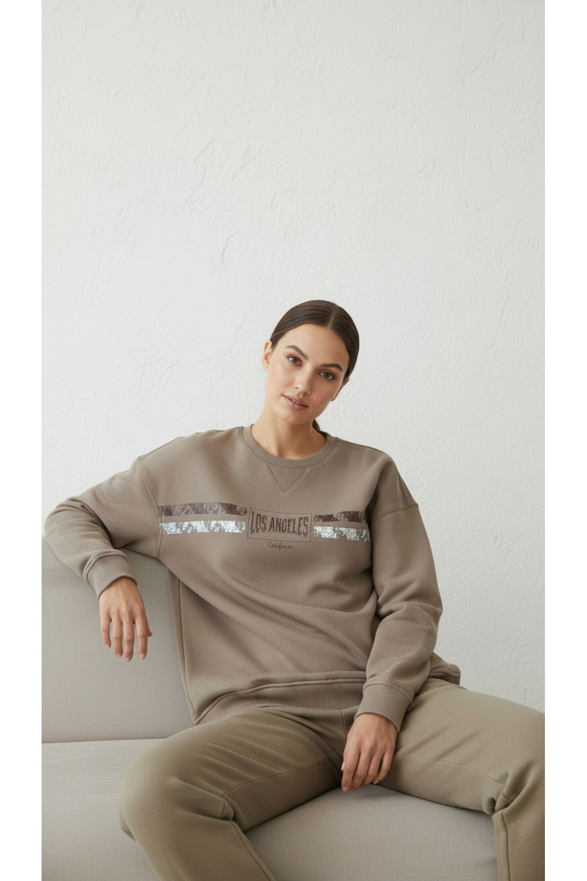 Kadın Baskılı Şardonlu Üç İp Şevval Sweatshirt Sarı Kadın Baskılı Şardonlu Üç İp Şevval Sweatshirt Sarı ARN.2701 XL