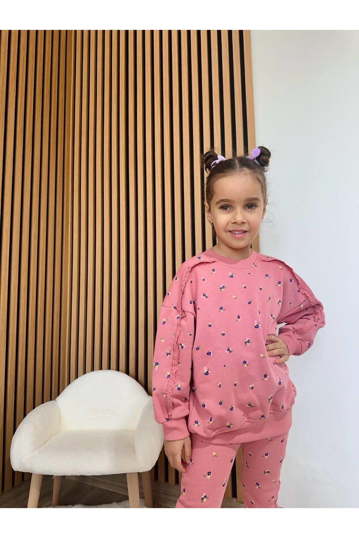 Kız Çocuk Pamuklu Gül Kurusu Mini Çiçek Desenli Sweatshirt & Flare Eşofman Takım Kız Çocuk Pamuklu Gül Kurusu Mini Çiçek Desenli Sweatshirt & Flare Eşofman Takım Mg26Ekım152 7-8 Yaş