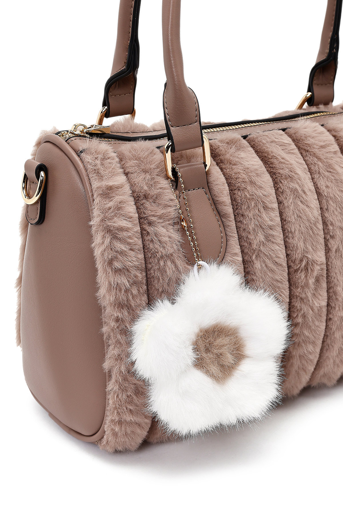 Kadın Vizon Uzun Askılı Aksesuarlı Peluş Omuz Çantası 25WBD2673PH Kadın Vizon Uzun Askılı Aksesuarlı Peluş Omuz Çantası 25WBD2673PH Standart