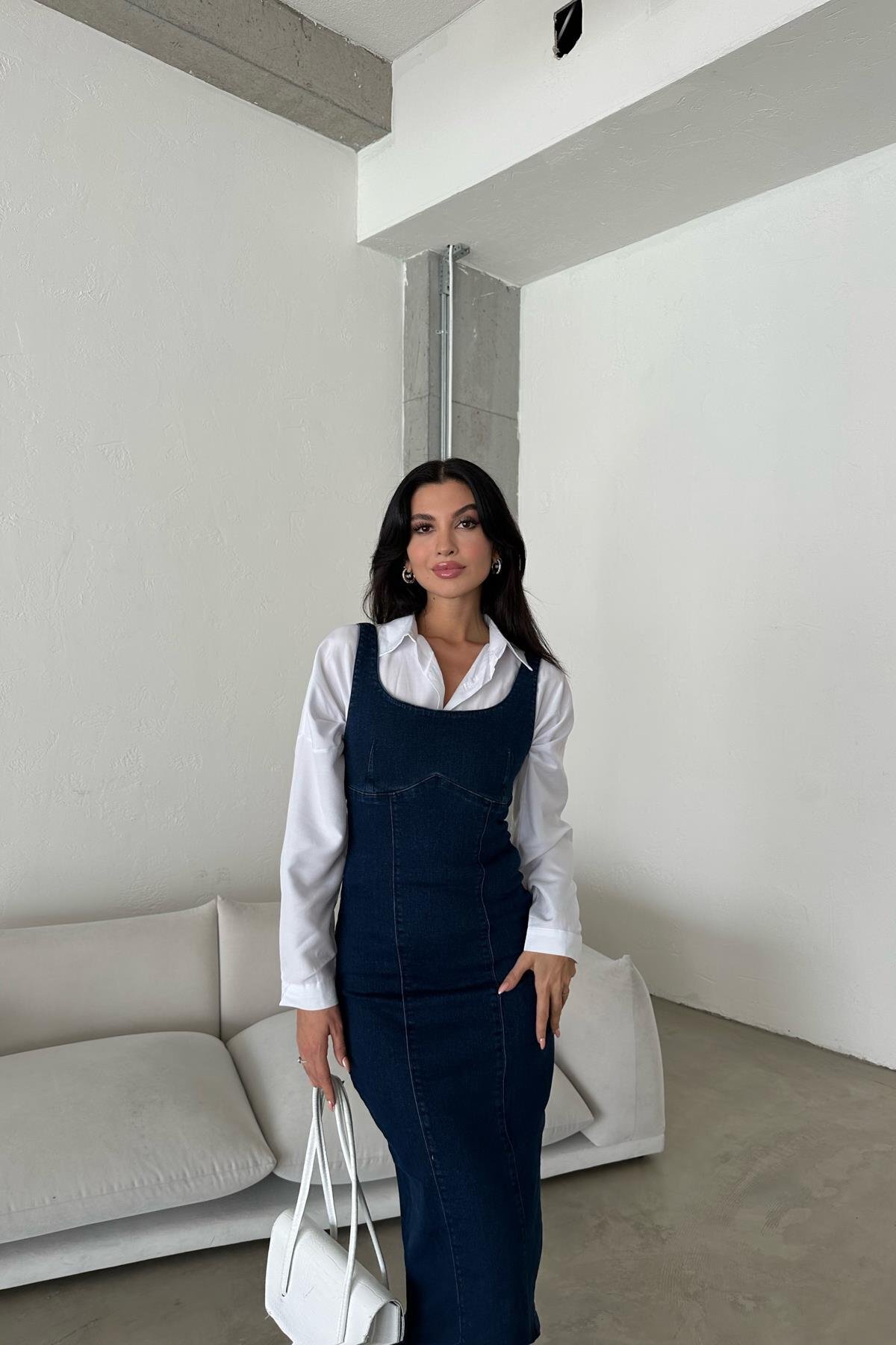Arka Fermuarlı Yırtmaçlı Denim Elbise Arka Fermuarlı Yırtmaçlı Denim Elbise ELBİSE UZUN-001 XL