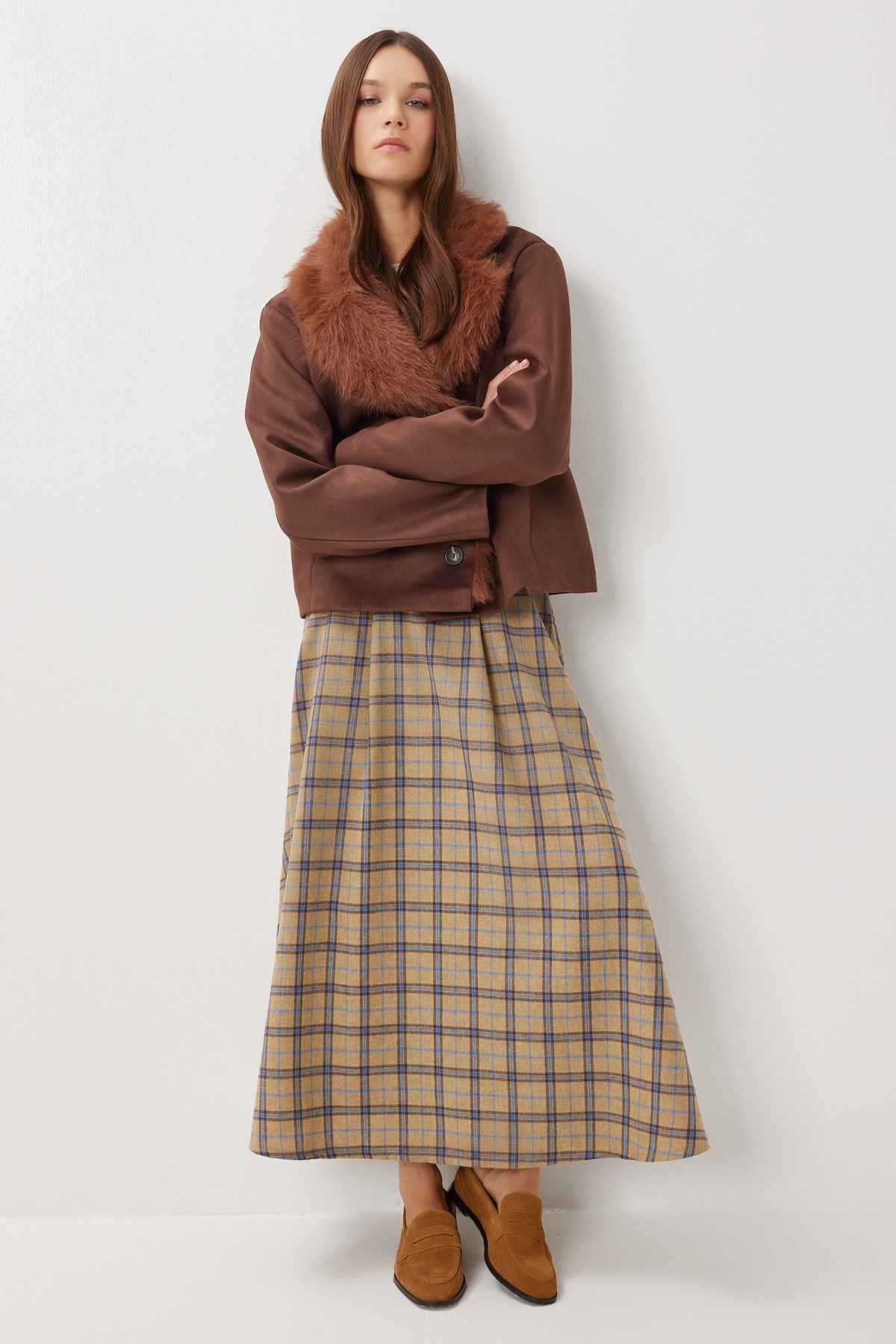 Kürk Yakalı Suni Süet Ceket LFN0138 KAHVERENGİ Kürk Yakalı Suni Süet Ceket LFN0138 KAHVERENGİ 40