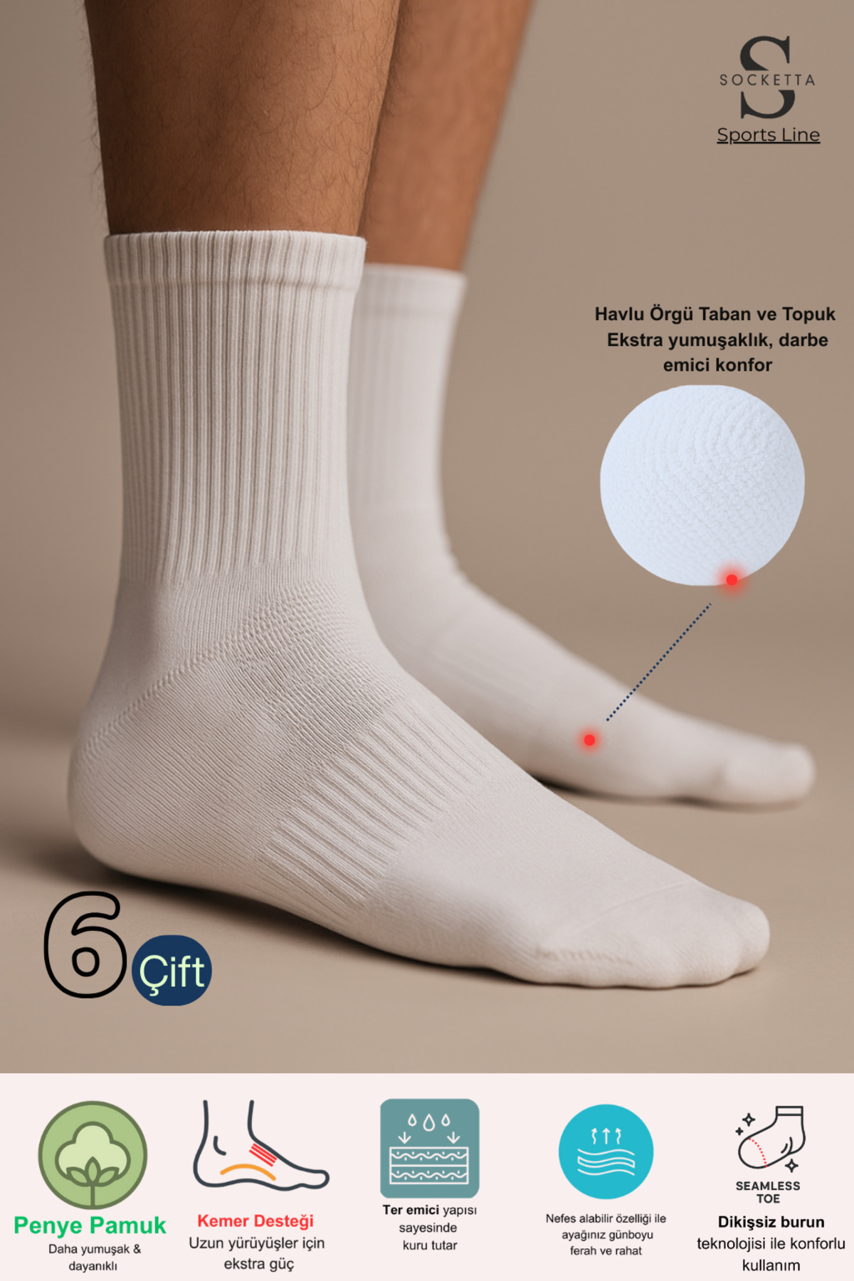 Erkek Spor Dikişsiz Havlu Taban 6'lı Premium Tenis Soket Çorap Erkek Spor Dikişsiz Havlu Taban 6'lı Premium Tenis Soket Çorap 25-00011 40-44