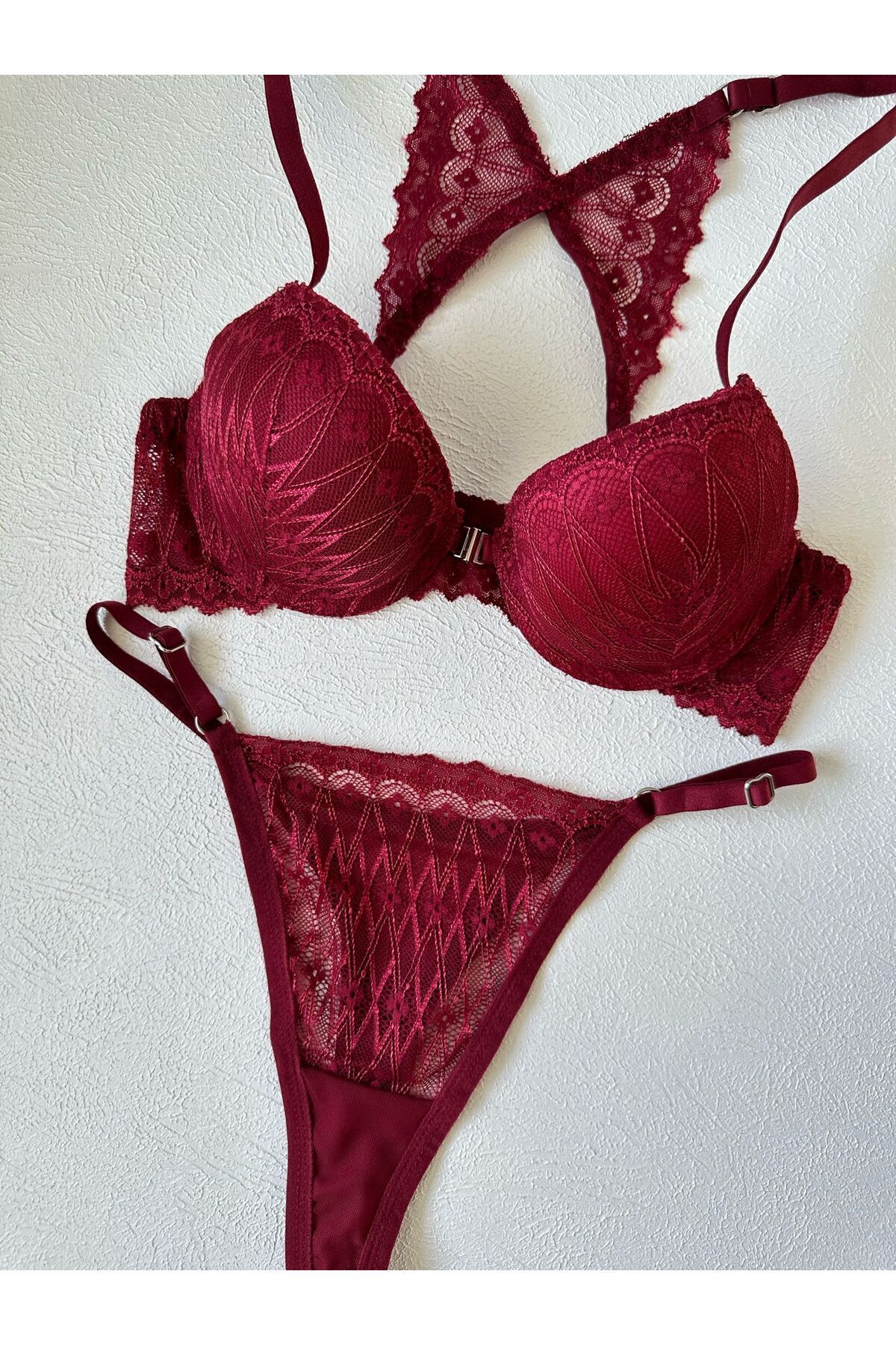 Önden Açmalı Destekli Dantel Detaylı Sütyen Takımı - BORDO Önden Açmalı Destekli Dantel Detaylı Sütyen Takımı - BORDO ARONA-310 90B