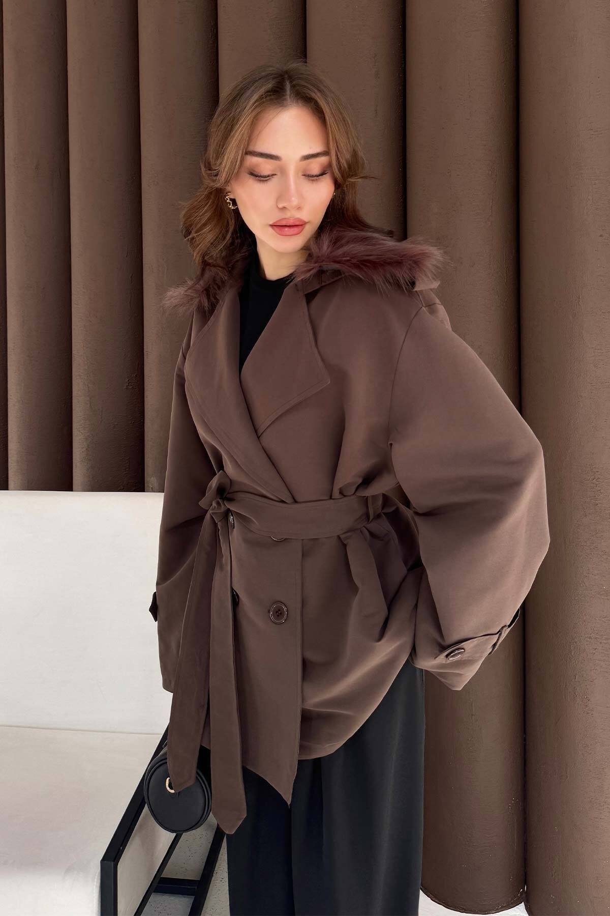 Kürklü Kısa Trençkot 32-3723 Kürklü Kısa Trençkot 32-3723 P-04281 36-38