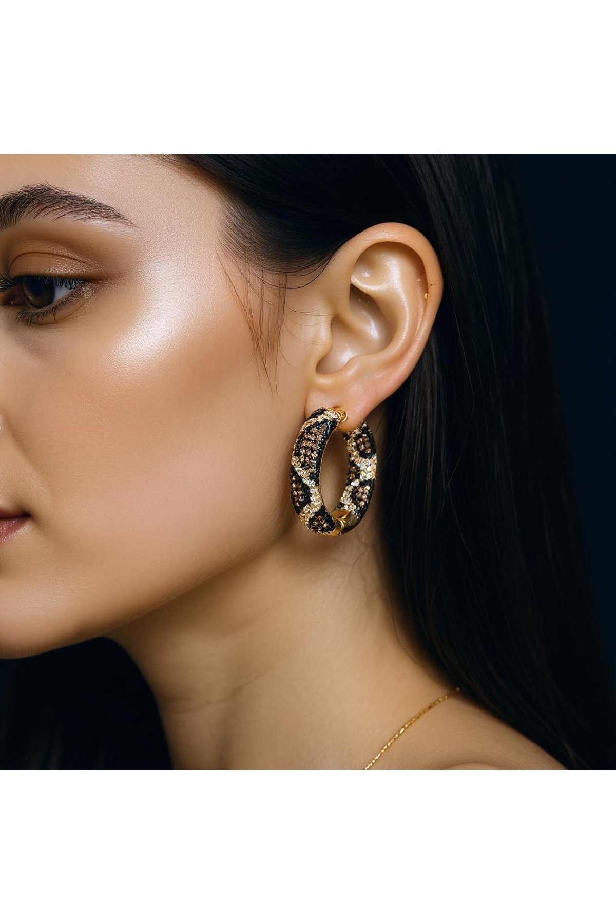 Rayne 18k Altın Kaplama Küpe Rayne 18k Altın Kaplama Küpe Leopar taşlı küpe تک سایز