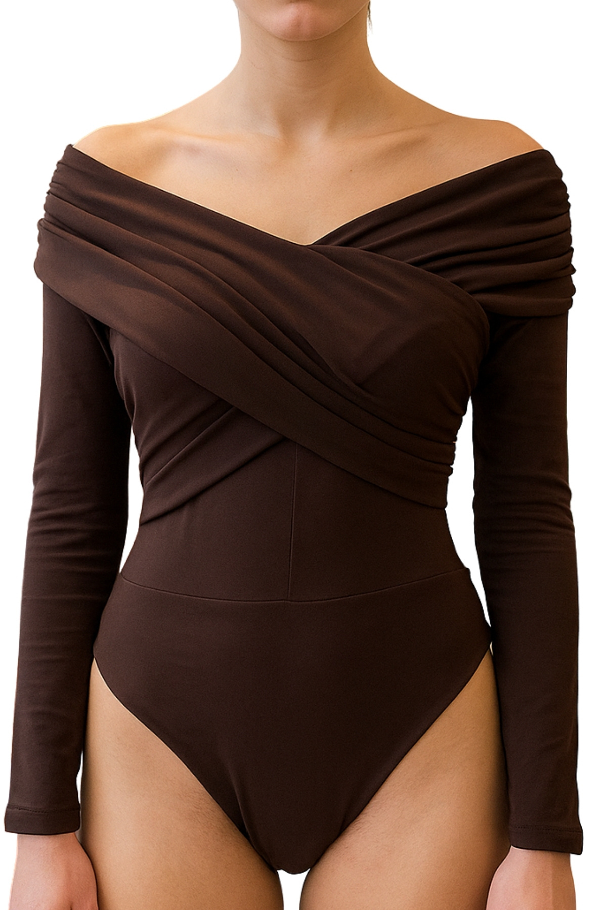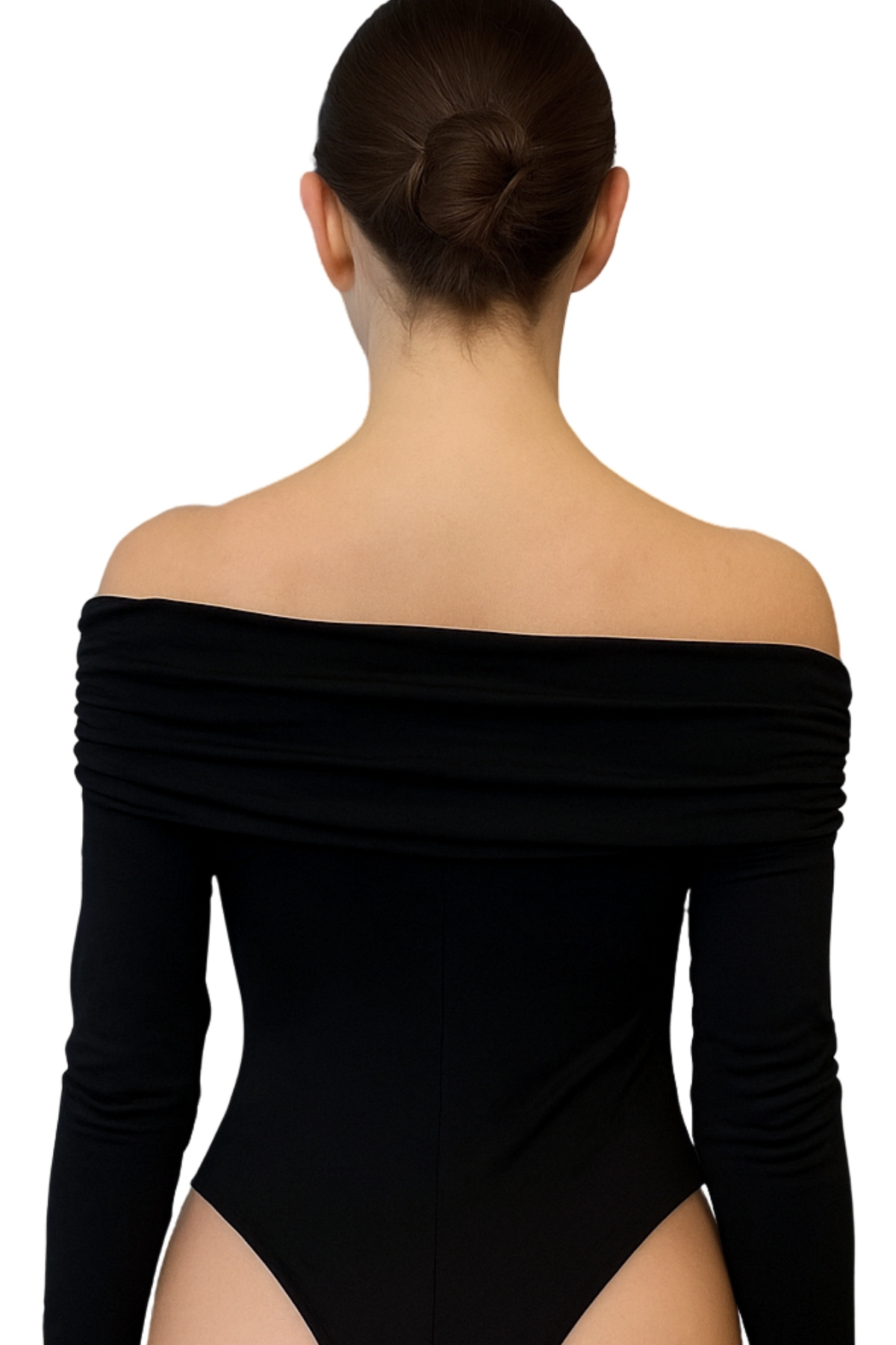 Kadın Öpücük Yaka Drapeli Jarse Bodysuit Kadın Öpücük Yaka Drapeli Jarse Bodysuit BS1011 L