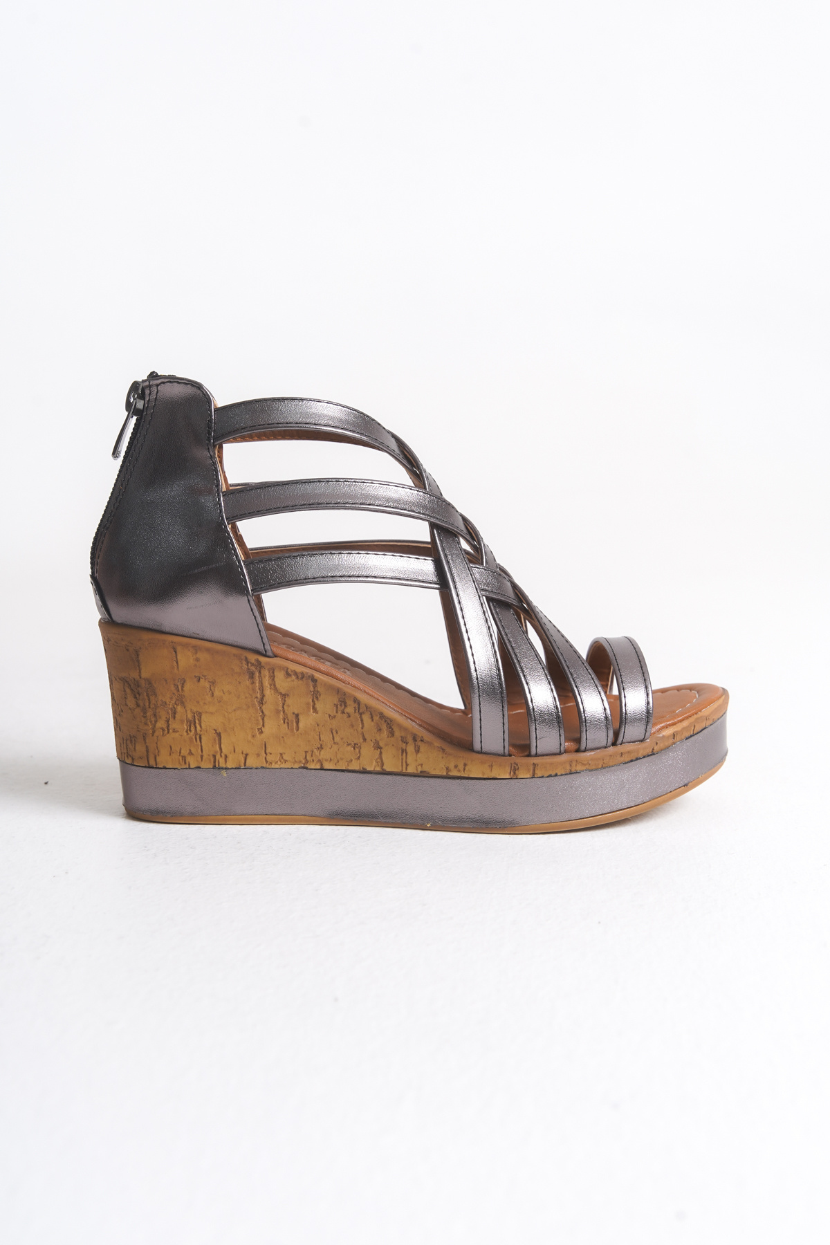 Kadın Parlak Metalik Tasarım Fermuarlı Kafes Model Dolgu Topuklu Ayakkabı / Sandalet Kadın Parlak Metalik Tasarım Fermuarlı Kafes Model Dolgu Topuklu Ayakkabı / Sandalet Cesena 40