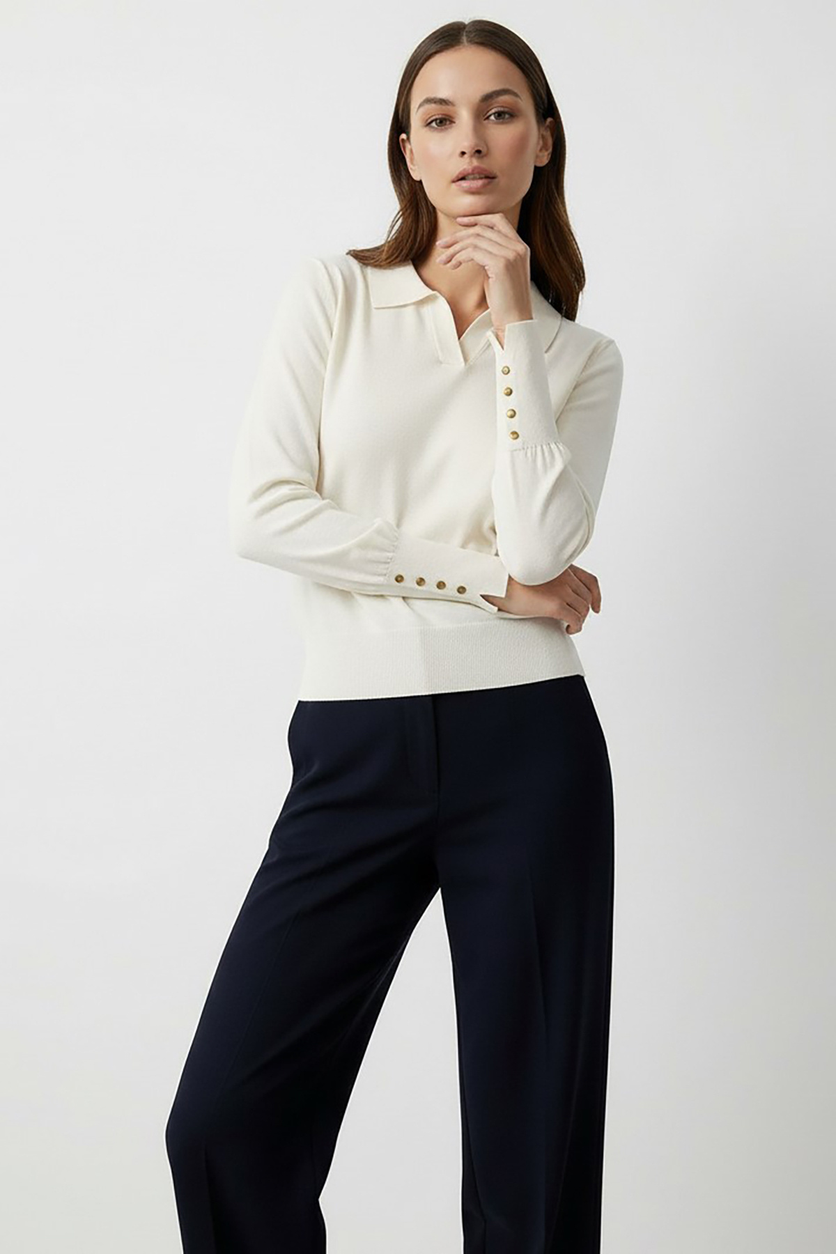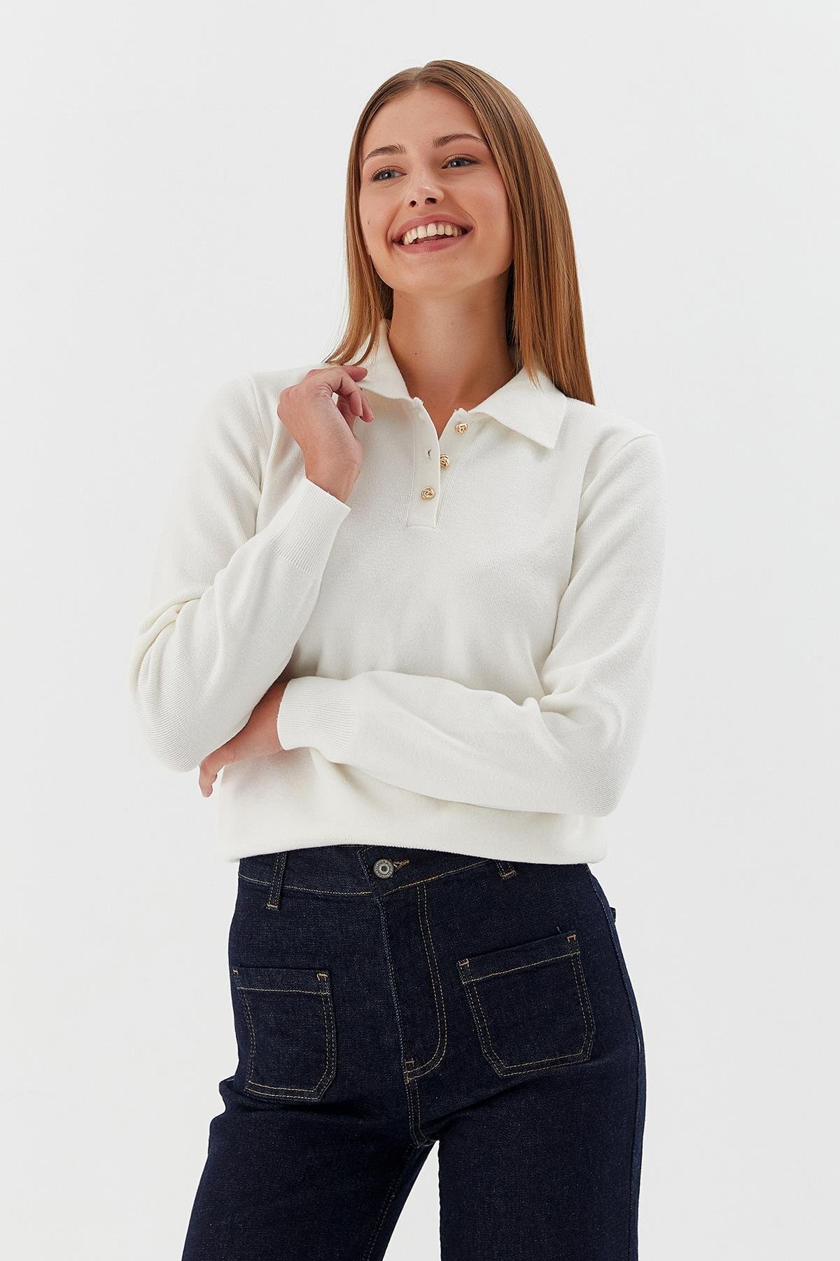 Kadın Polo Yaka Düz Kazak Ekru Kadın Polo Yaka Düz Kazak Ekru NFS.140255 تک سایز