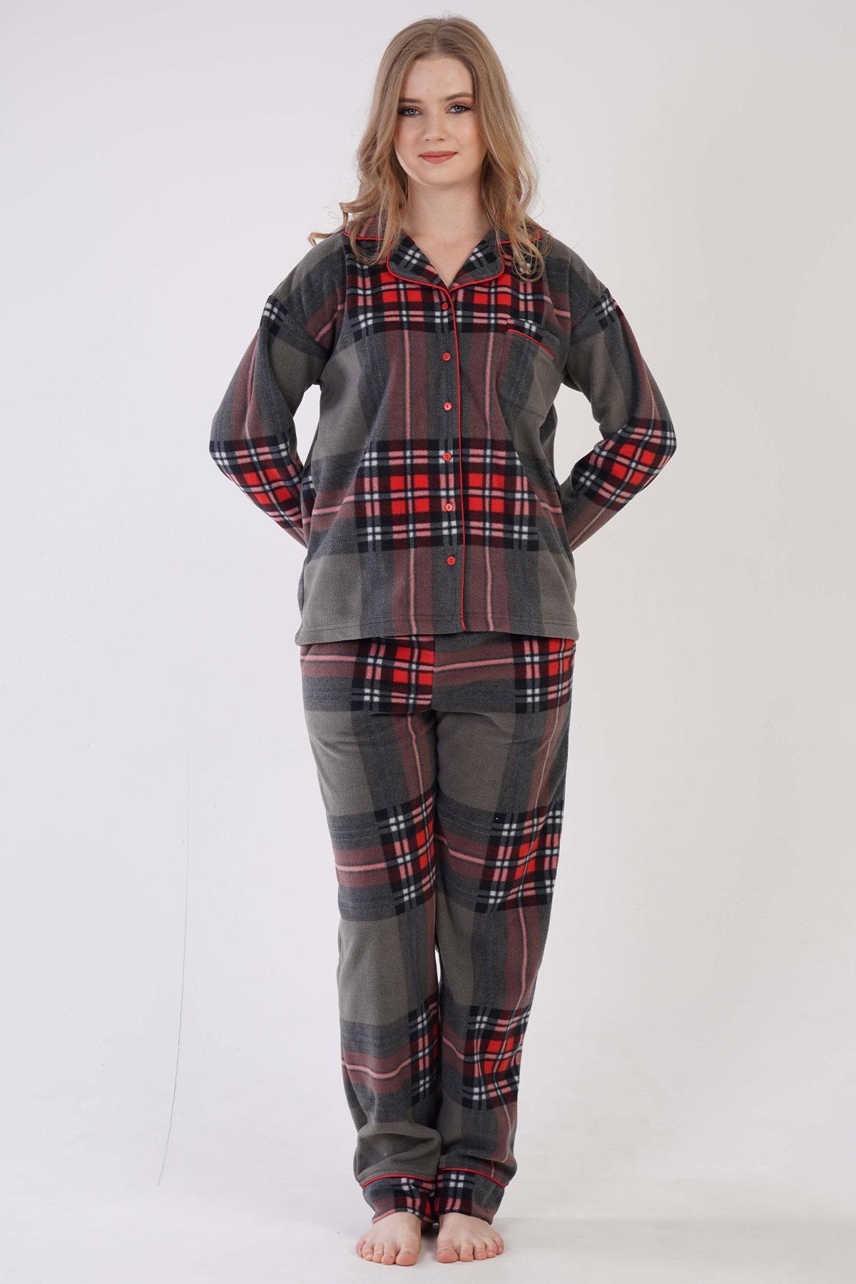 Kadın Polar Antrasit Pijama Takımı – Önden Düğmeli, Ekose Desen C2T9N0013 Kadın Polar Antrasit Pijama Takımı – Önden Düğmeli, Ekose Desen C2T9N0013 2XL