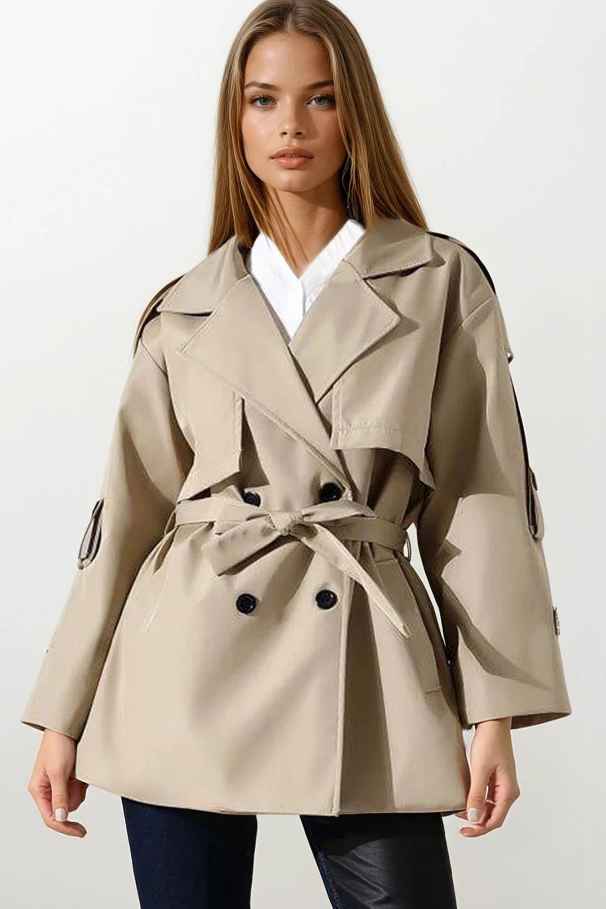 Kadın Kuşaklı Kısa Trençkot 5974 - Kahverengi Kadın Kuşaklı Kısa Trençkot 5974 - Kahverengi 5974BGD19 42