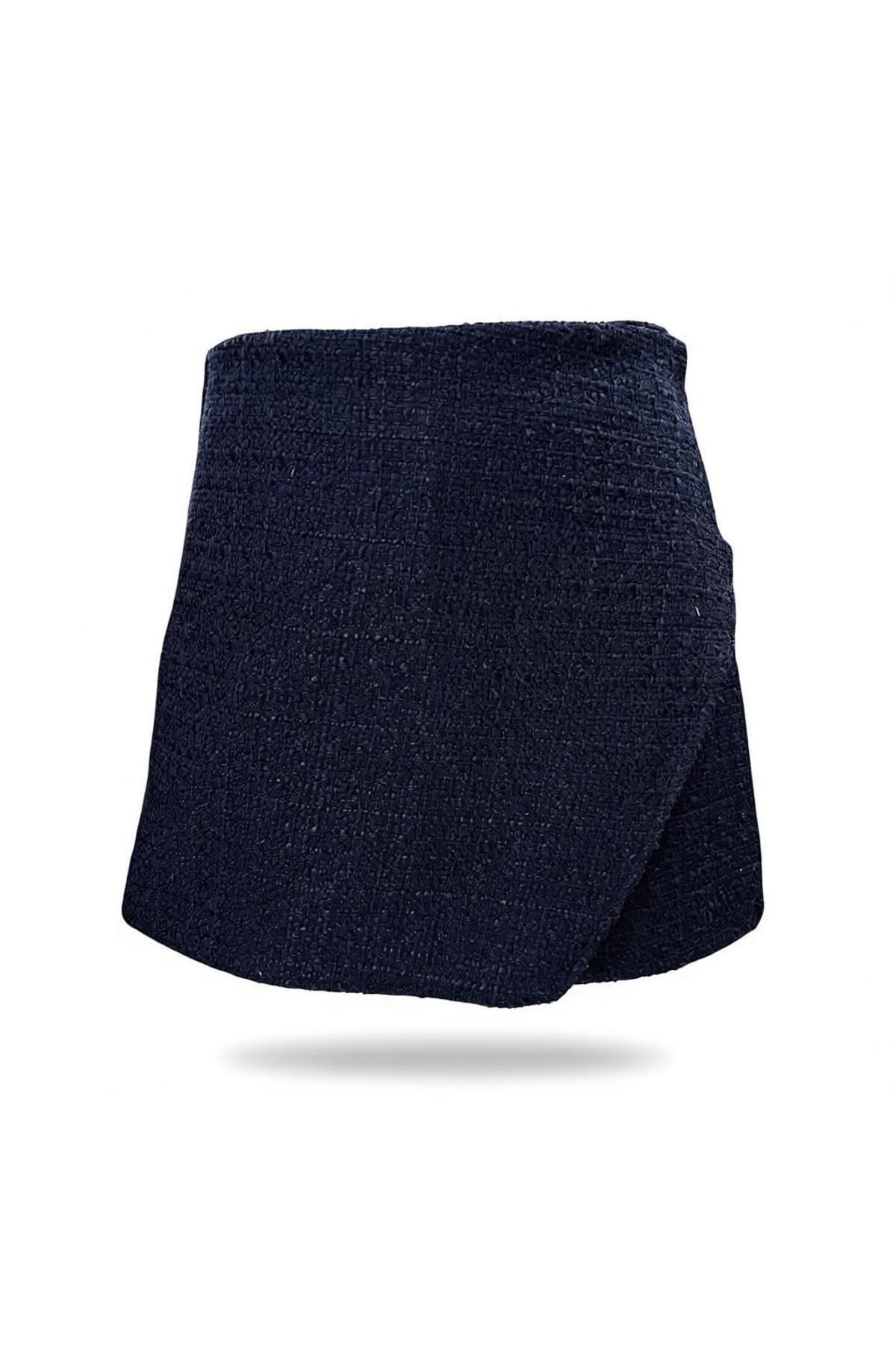 Kadın Siyah Parlak Tüvit Şık Şort Etek Kadın Siyah Parlak Tüvit Şık Şort Etek eight7720018 XL