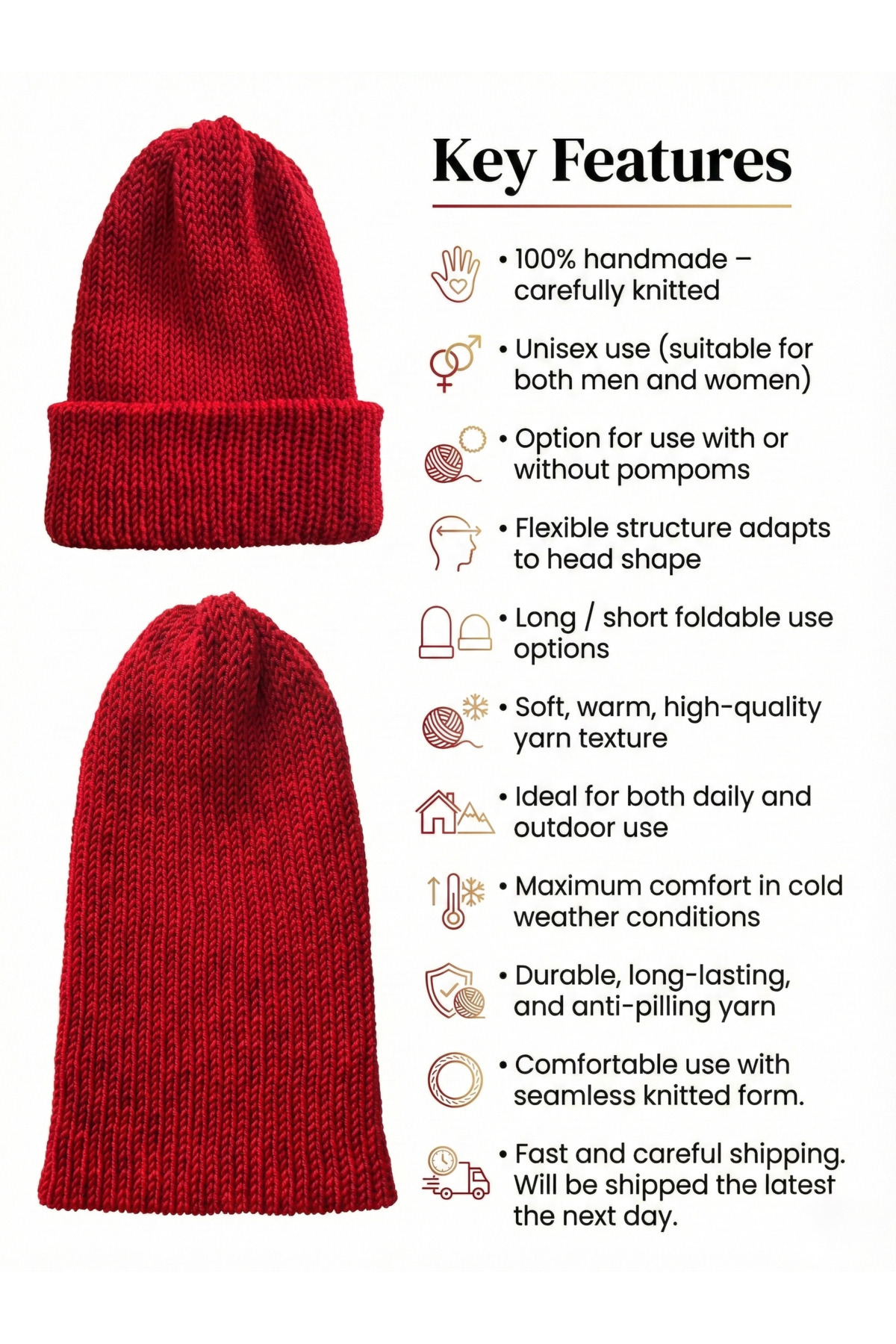 Kırmızı El Örgüsü Canlı Renk Fitilli Yumuşak Kışlık Erkek Bere Kırmızı El Örgüsü Canlı Renk Fitilli Yumuşak Kışlık Erkek Bere bereerkek Standart