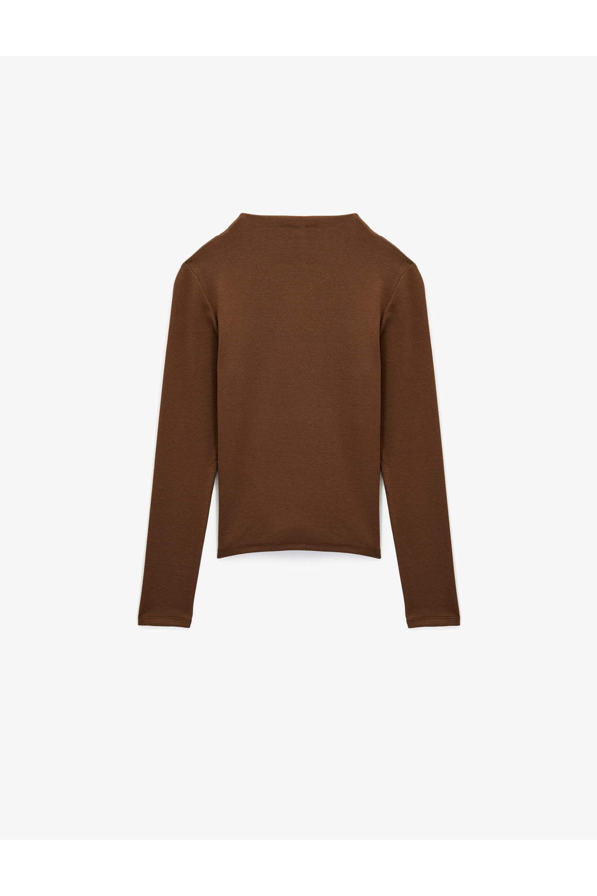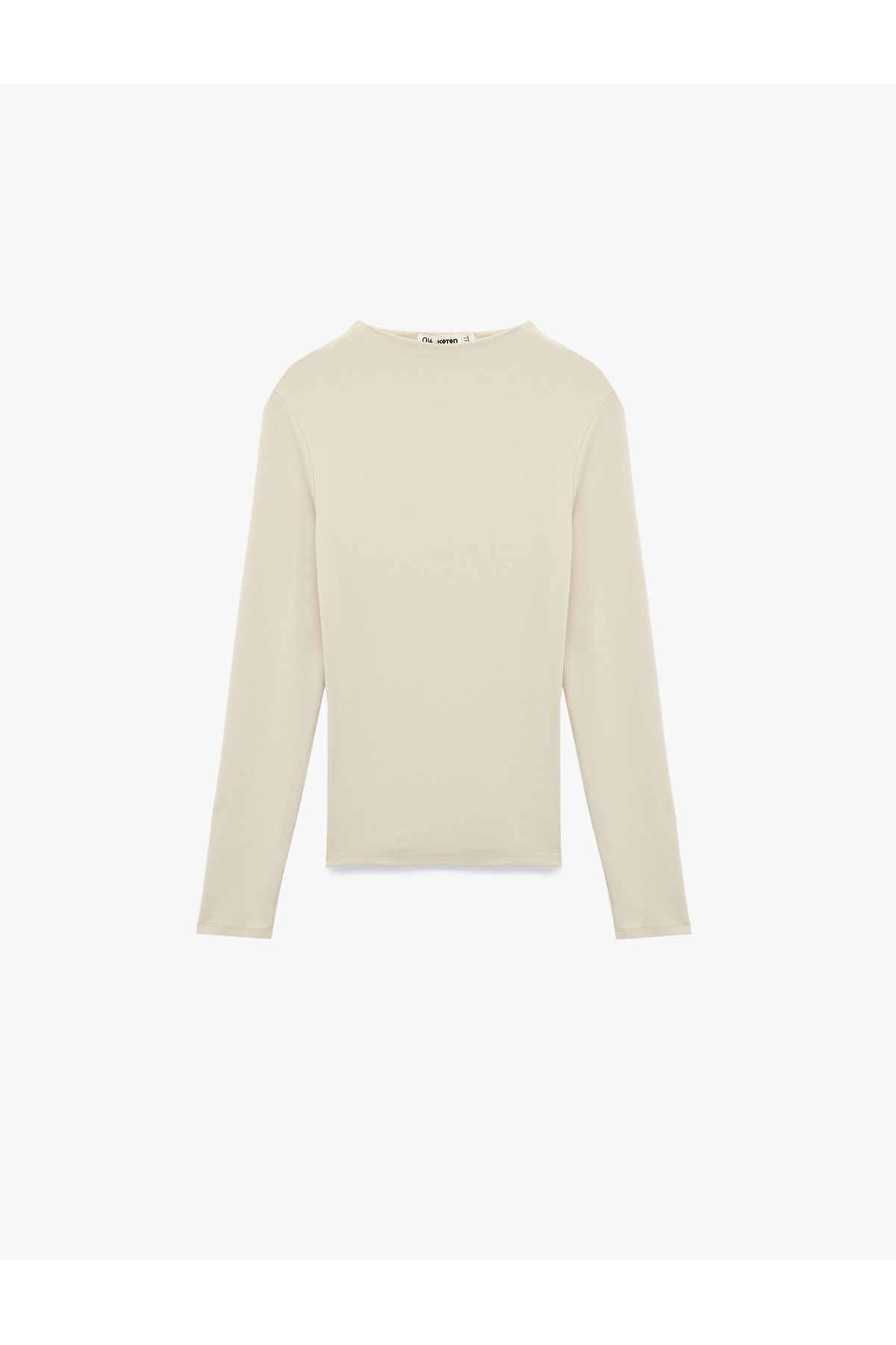 Dik Yaka Slim Fit Modal Karışımlı Basic Uzun Kollu Tişört Dik Yaka Slim Fit Modal Karışımlı Basic Uzun Kollu Tişört 6WAL10518IK L