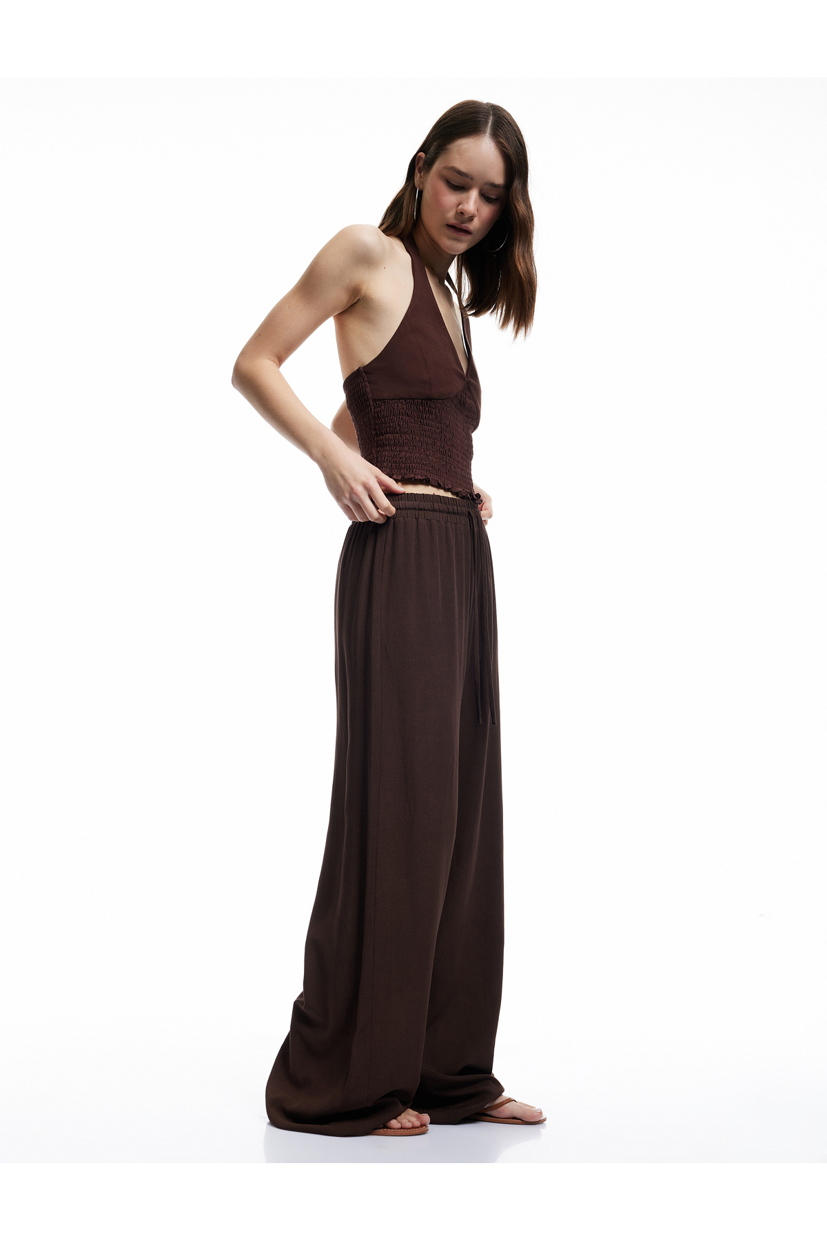 Viskon Karışımlı Cepli Düğmeli Beli Bağcıklı Geniş Paça Kumaş Pantolon Viskon Karışımlı Cepli Düğmeli Beli Bağcıklı Geniş Paça Kumaş Pantolon 6WAL40045IW 40