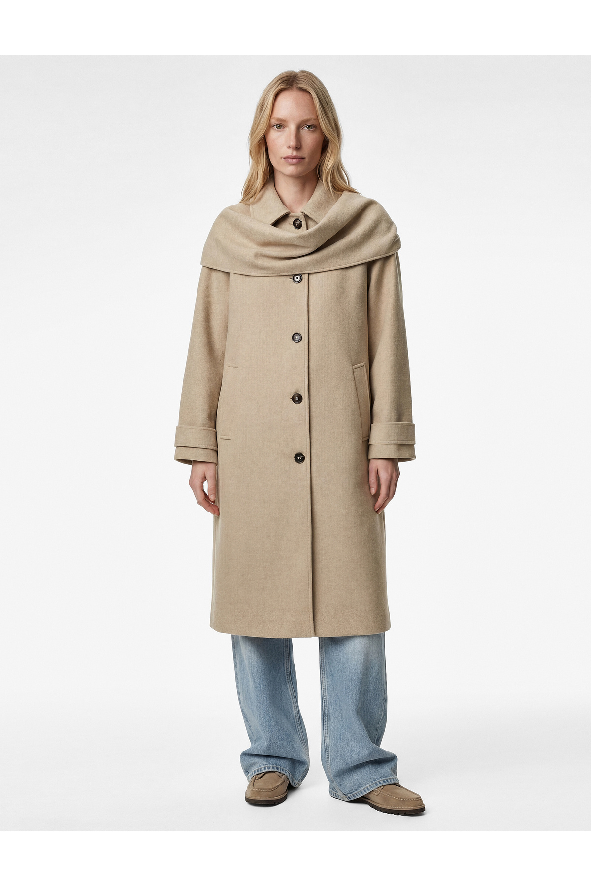 Atkılı Kaban Kaşe Düğmeli Cepli Uzun Kollu Atkılı Kaban Kaşe Düğmeli Cepli Uzun Kollu 6WAK00114EW 44