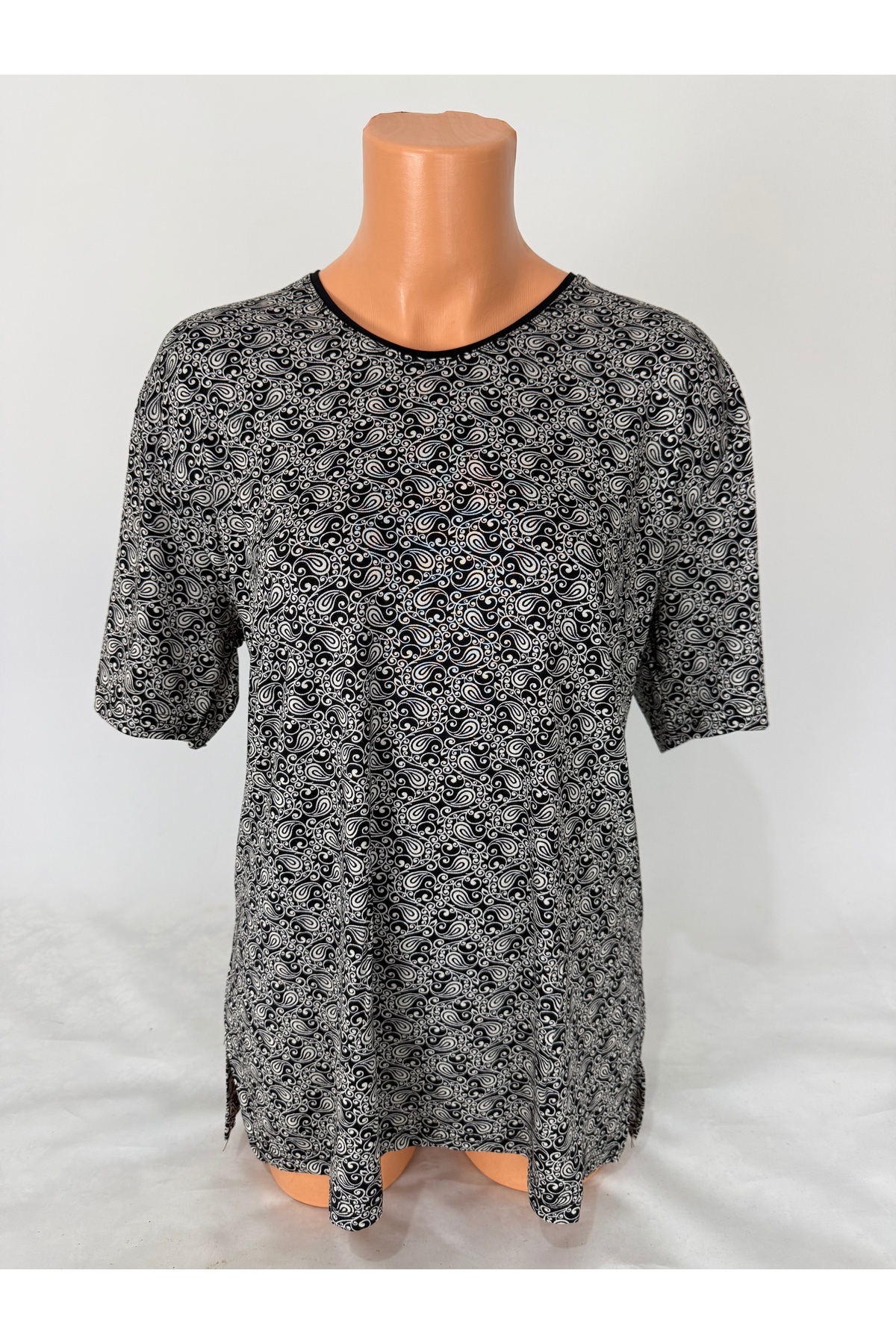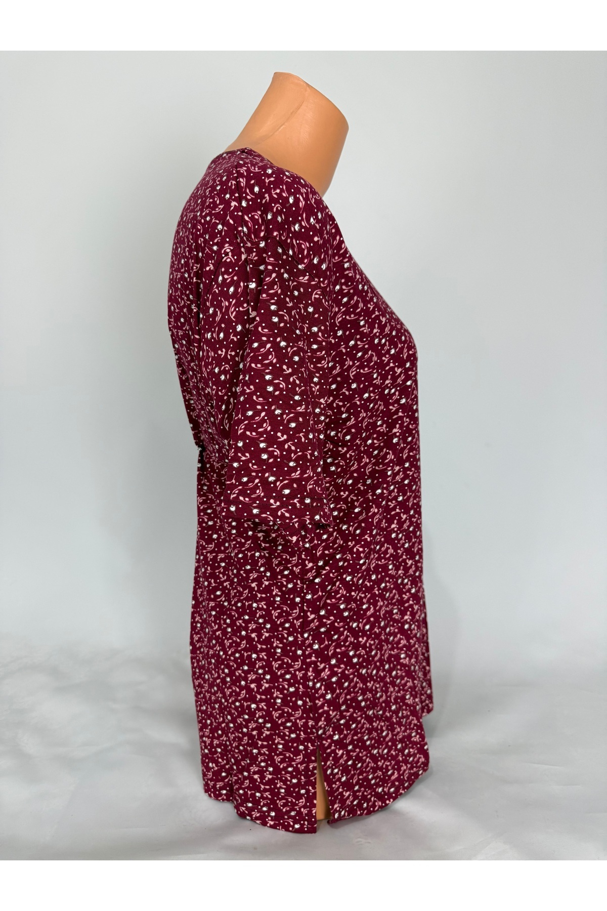 Kadın Bordo U Yaka Kısa Kollu Çiçek Desenli Yırtmaçlı Dokuma Viskon Anne Penye Tişört Kadın Bordo U Yaka Kısa Kollu Çiçek Desenli Yırtmaçlı Dokuma Viskon Anne Penye Tişört RLY-2651 4XL