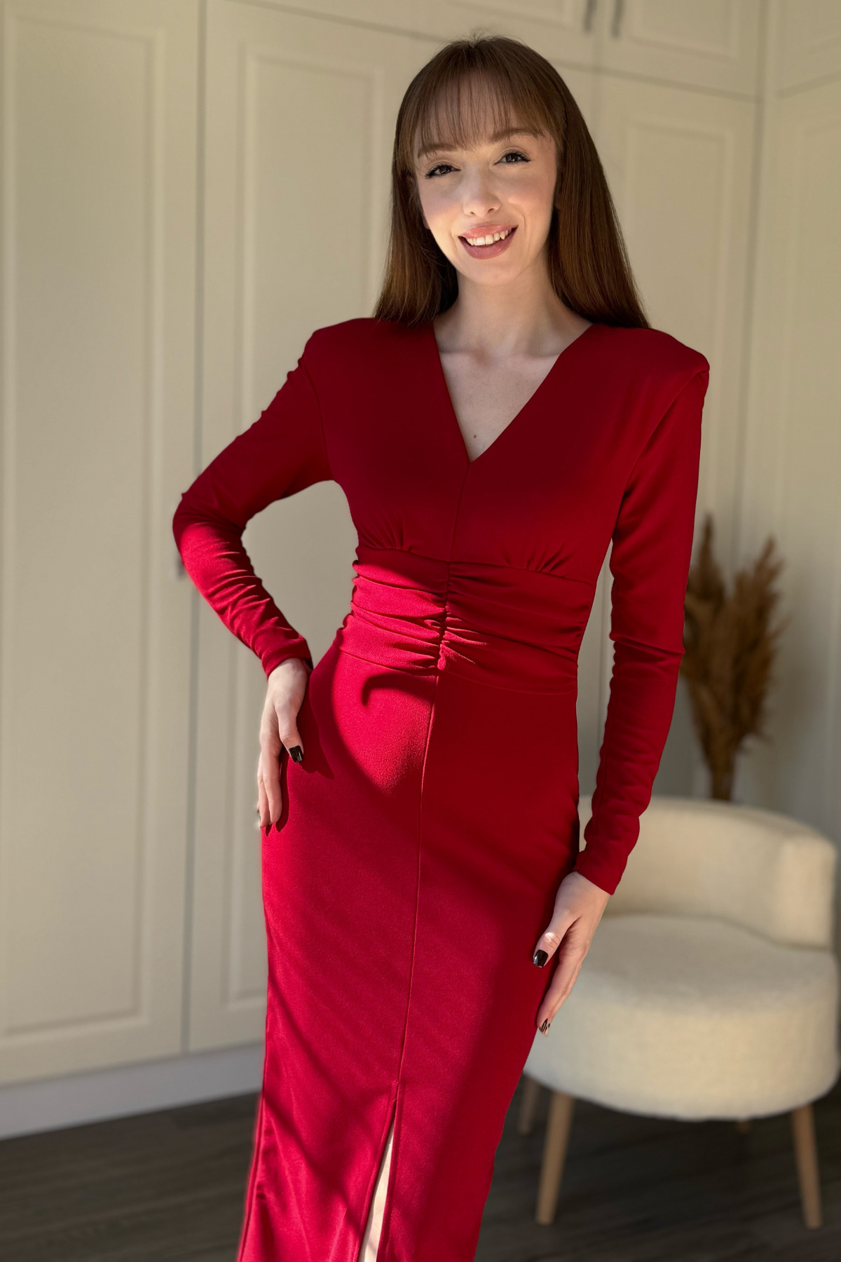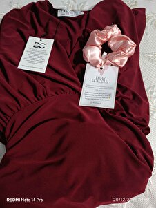 V Yaka Zarif Göğüs Drapeli Midi Bordo Elbise V Yaka Zarif Göğüs Drapeli Midi Bordo Elbise novadişns1 XL