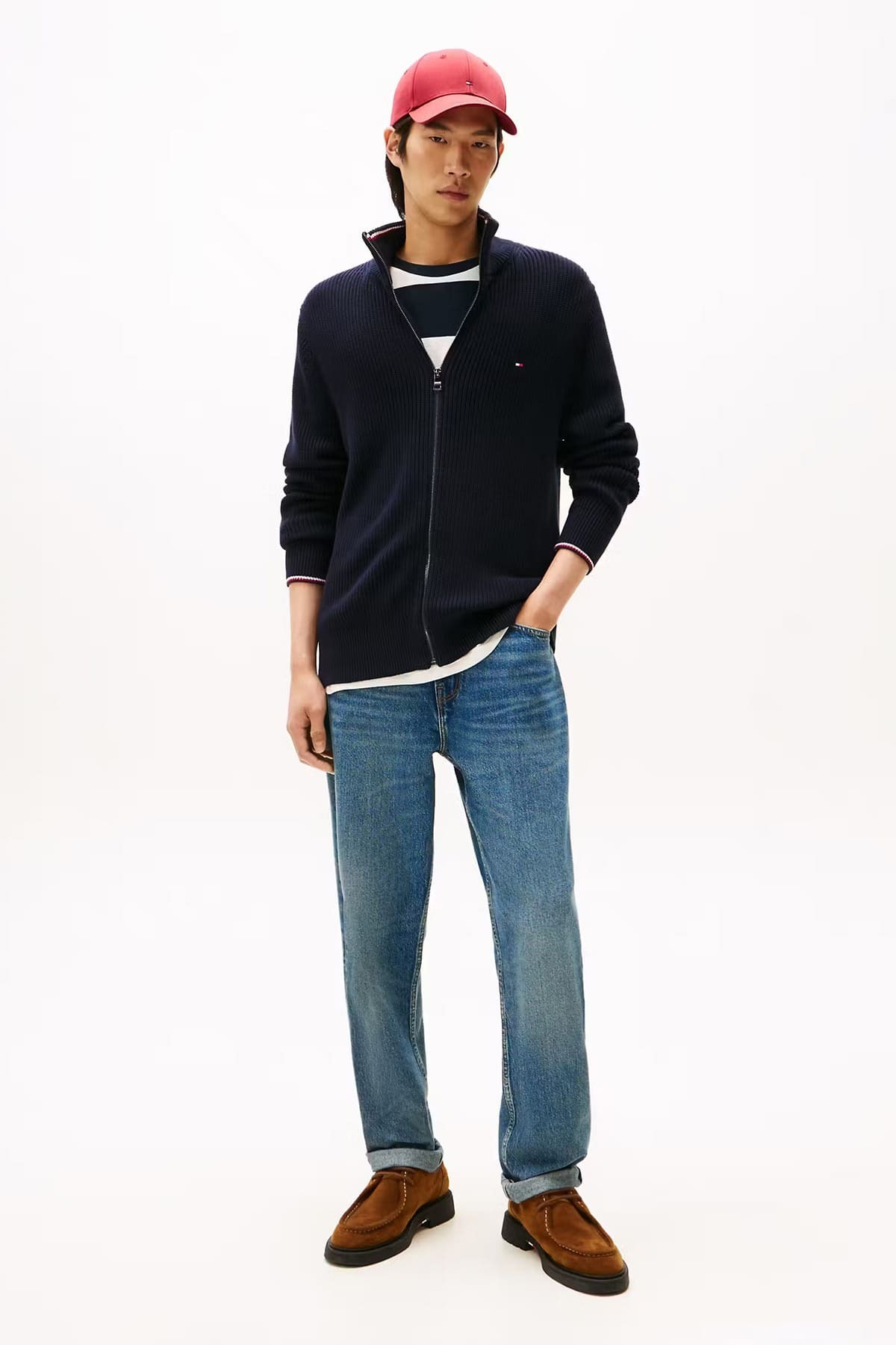 Erkek Dik Yaka Tam Kalıp Ribana Örgü Fermuarlı Triko Hırka - Lacivert Erkek Dik Yaka Tam Kalıp Ribana Örgü Fermuarlı Triko Hırka - Lacivert MW0MW41517 XL