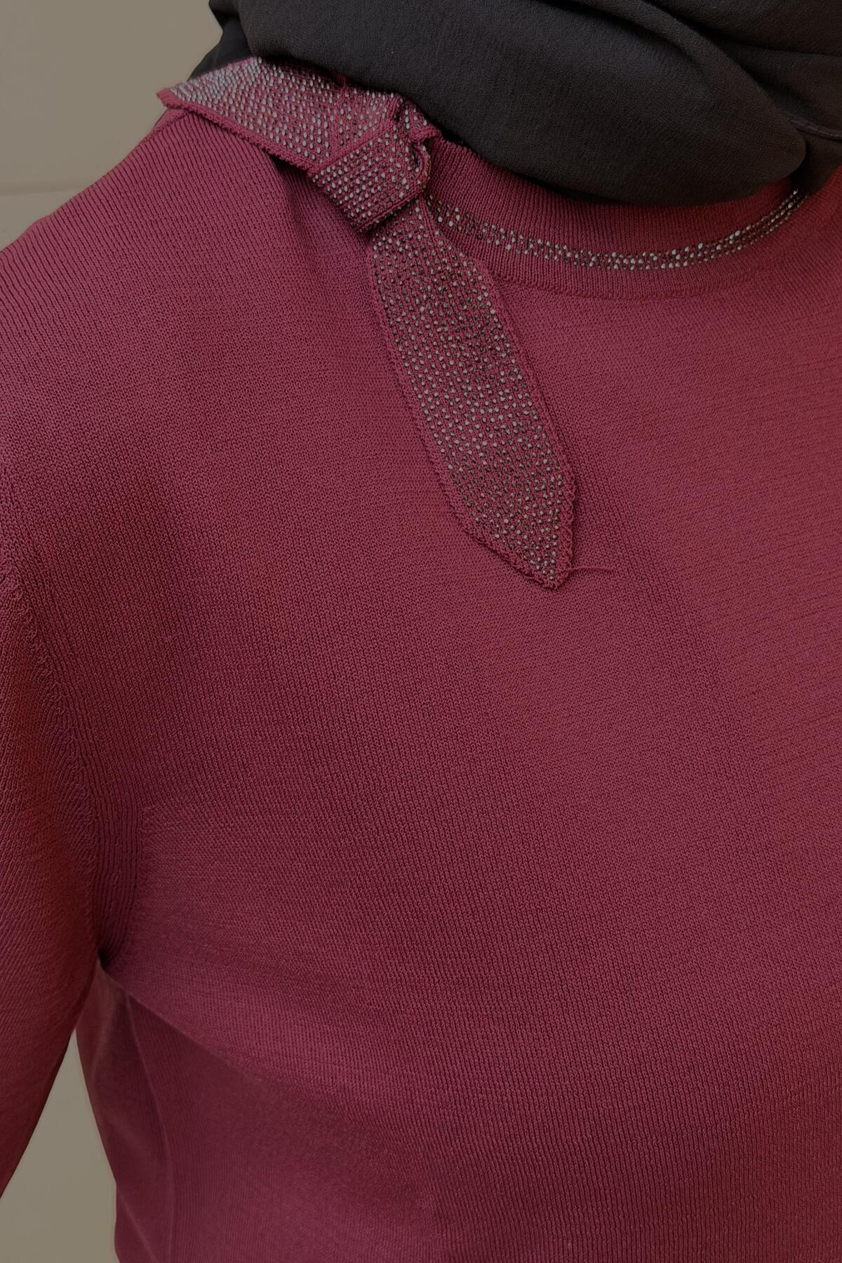 Yakası Fiyonk Taşlı Triko Tunik Yakası Fiyonk Taşlı Triko Tunik 26KGSTNK4186 2