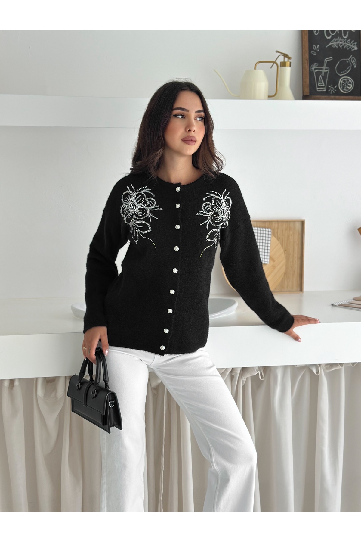 Çiçek Detaylı Hırka Siyah 25022 Çiçek Detaylı Hırka Siyah 25022 42-44
