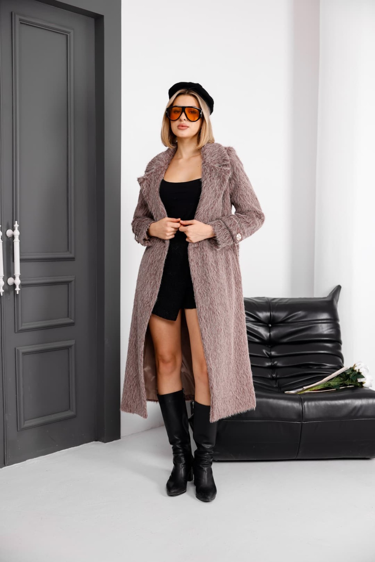 Kadın Alpaka Kürk Tüylü Kuşaklı Kaşe Kaban Kadın Alpaka Kürk Tüylü Kuşaklı Kaşe Kaban 25SS7877 42