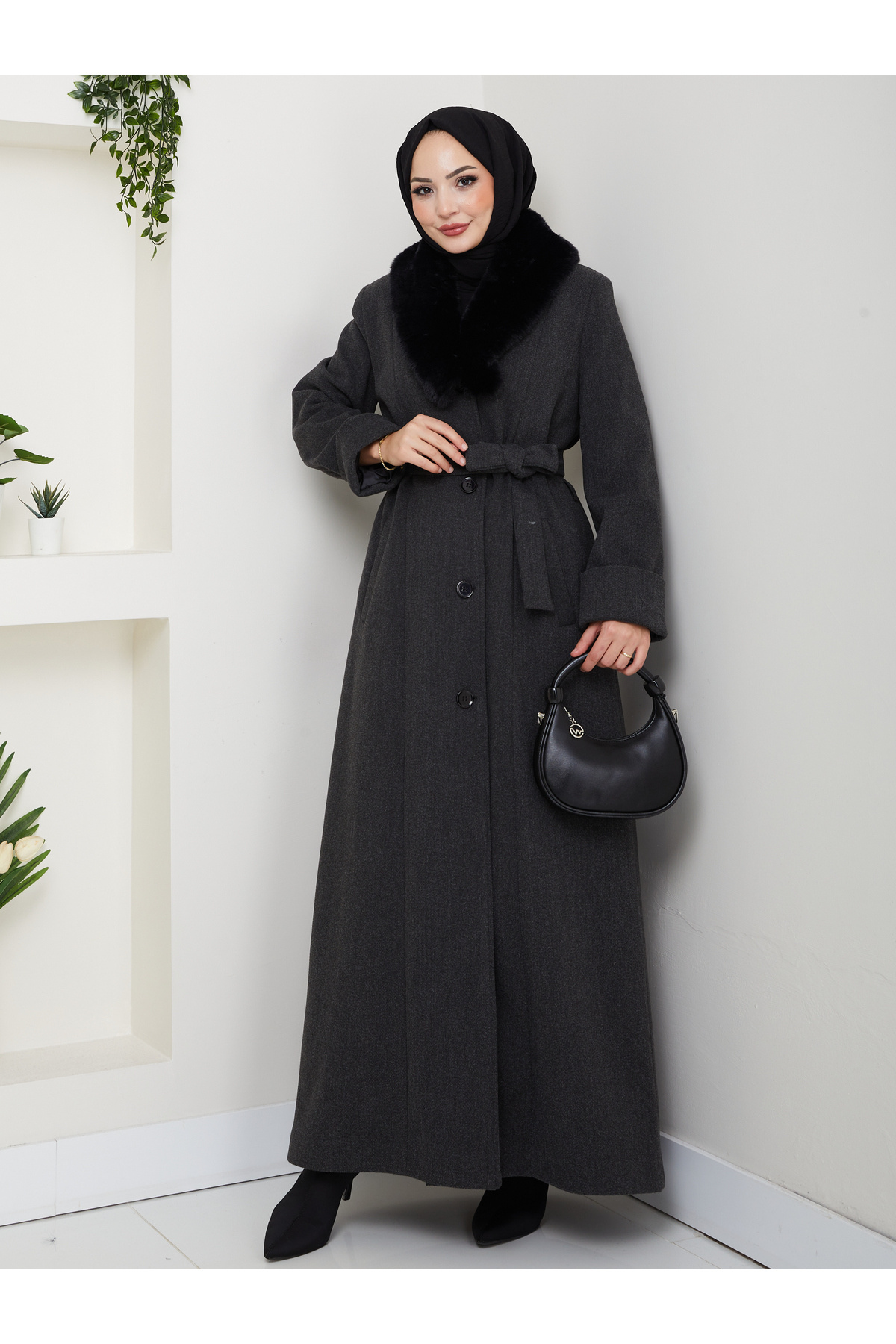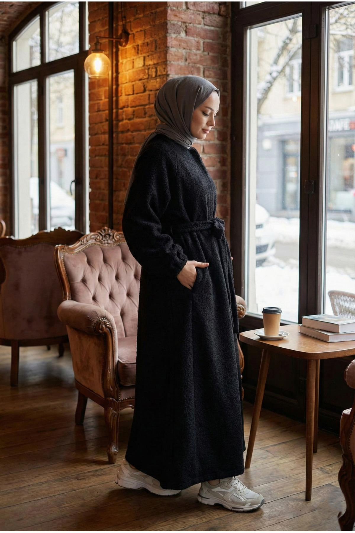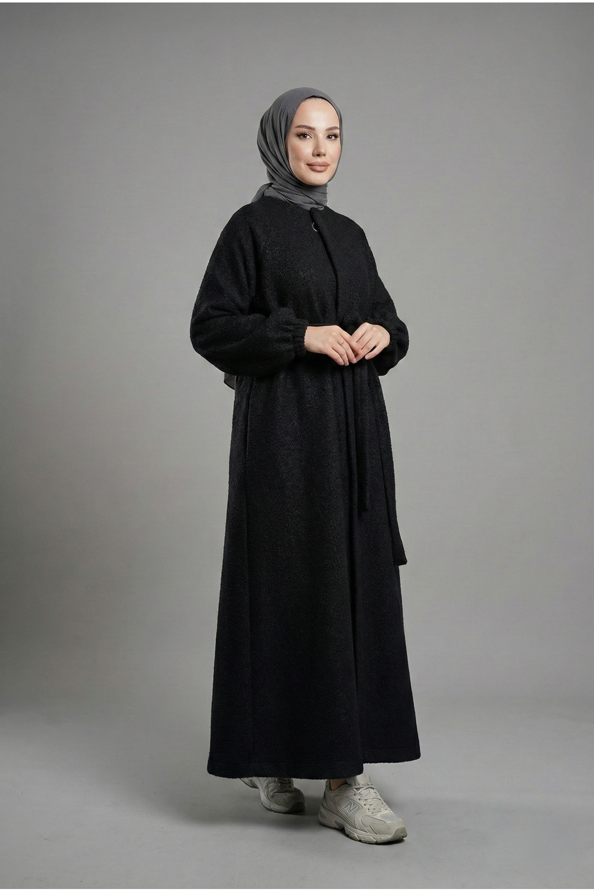 Siyah Buklet Kloş Kaban - Geniş Beden Aralığı Siyah Buklet Kloş Kaban - Geniş Beden Aralığı H4023 36-38