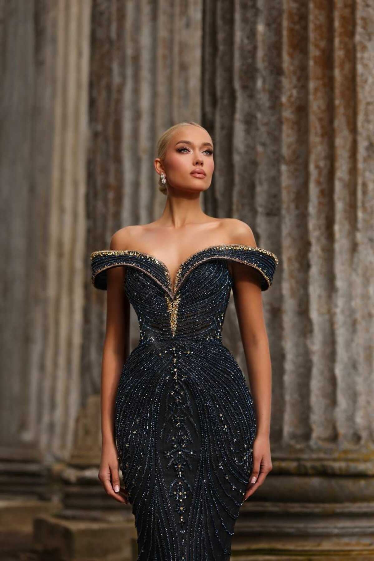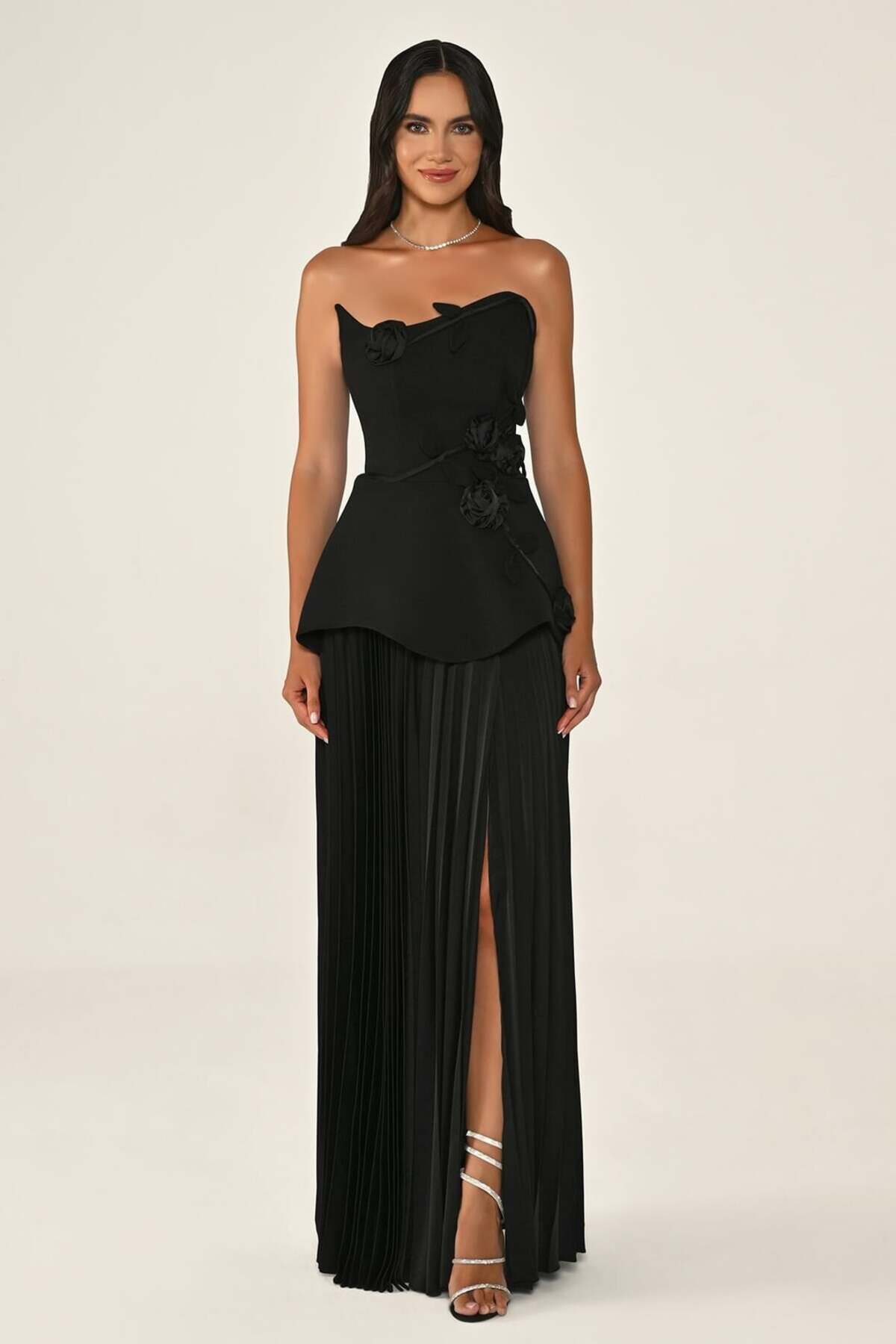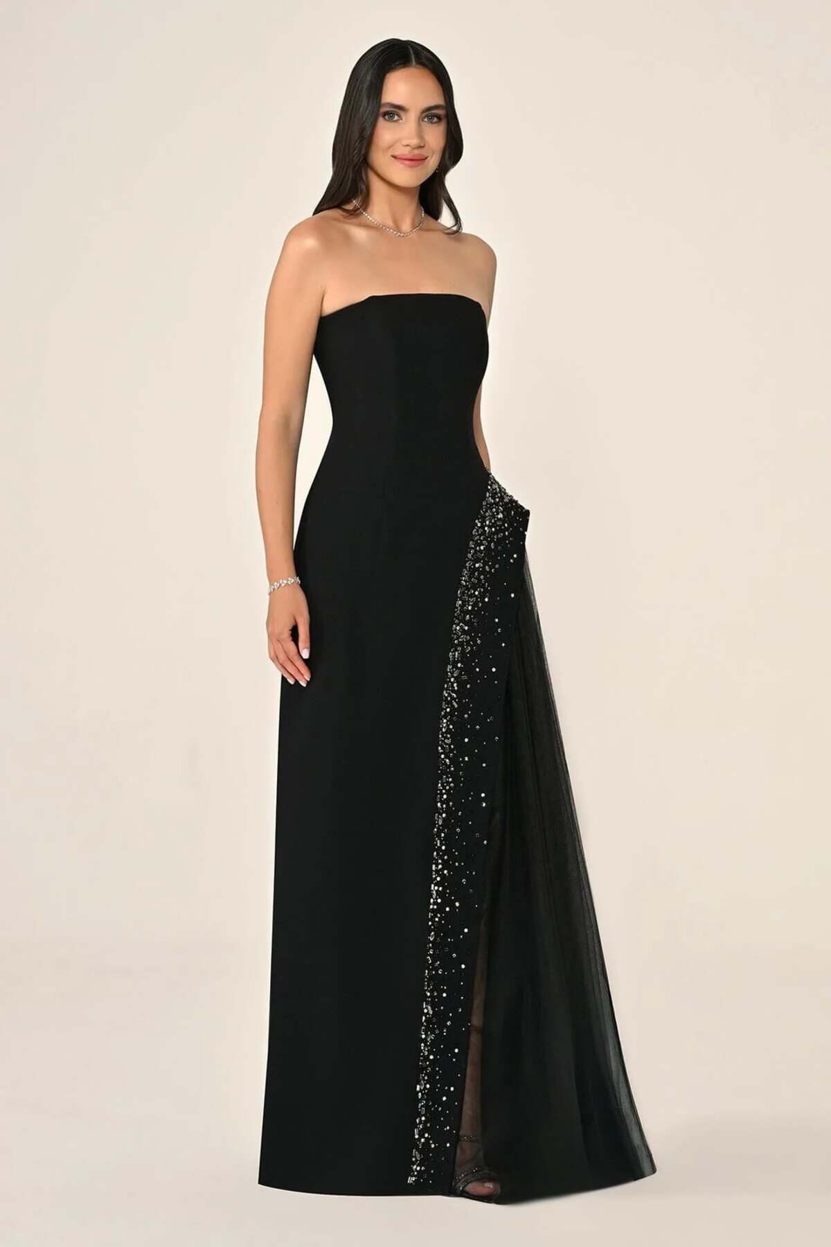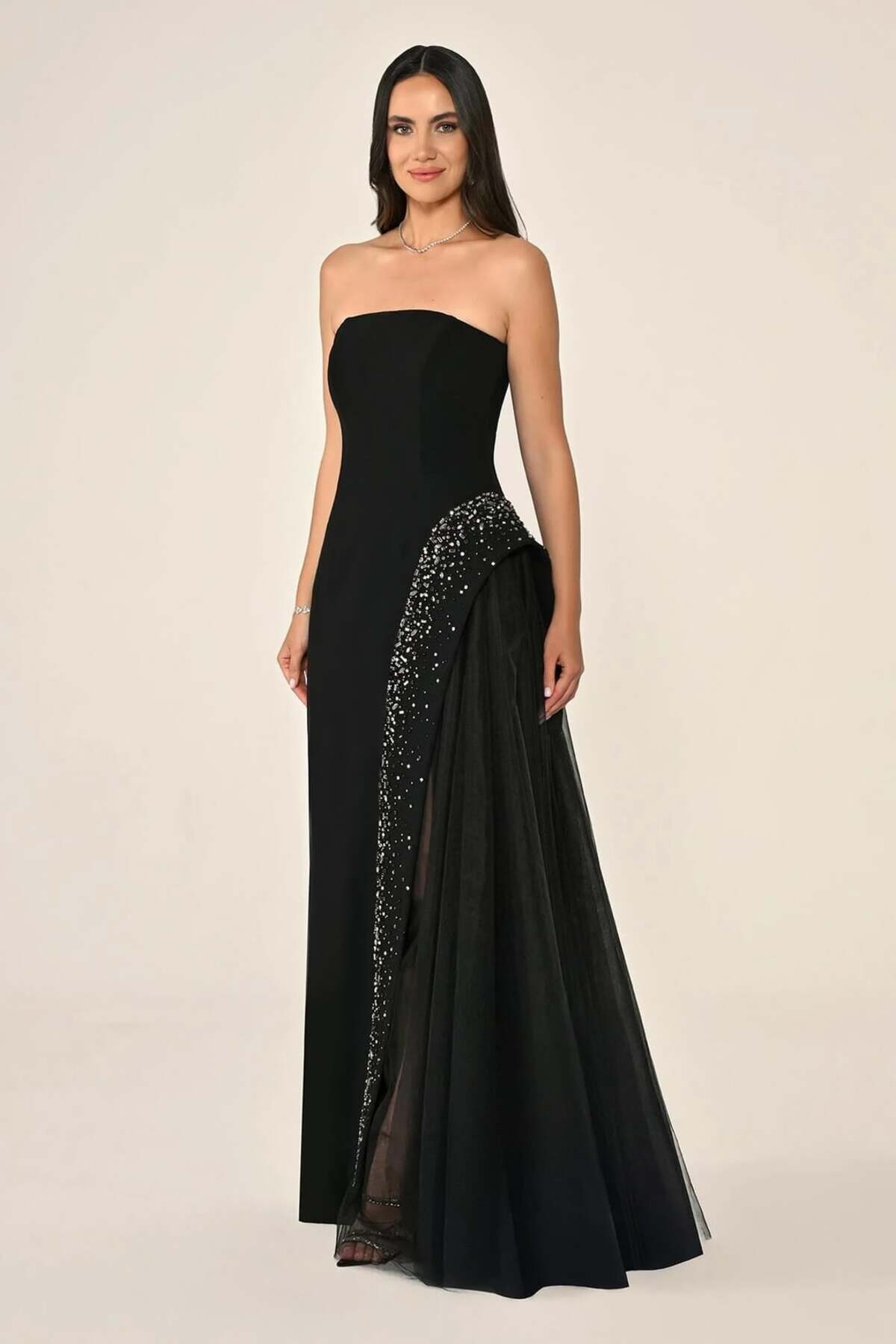 Straplez Eteği Taşlı Tüllü Krep Uzun Elbise Straplez Eteği Taşlı Tüllü Krep Uzun Elbise ABİYE ALF 7080 40