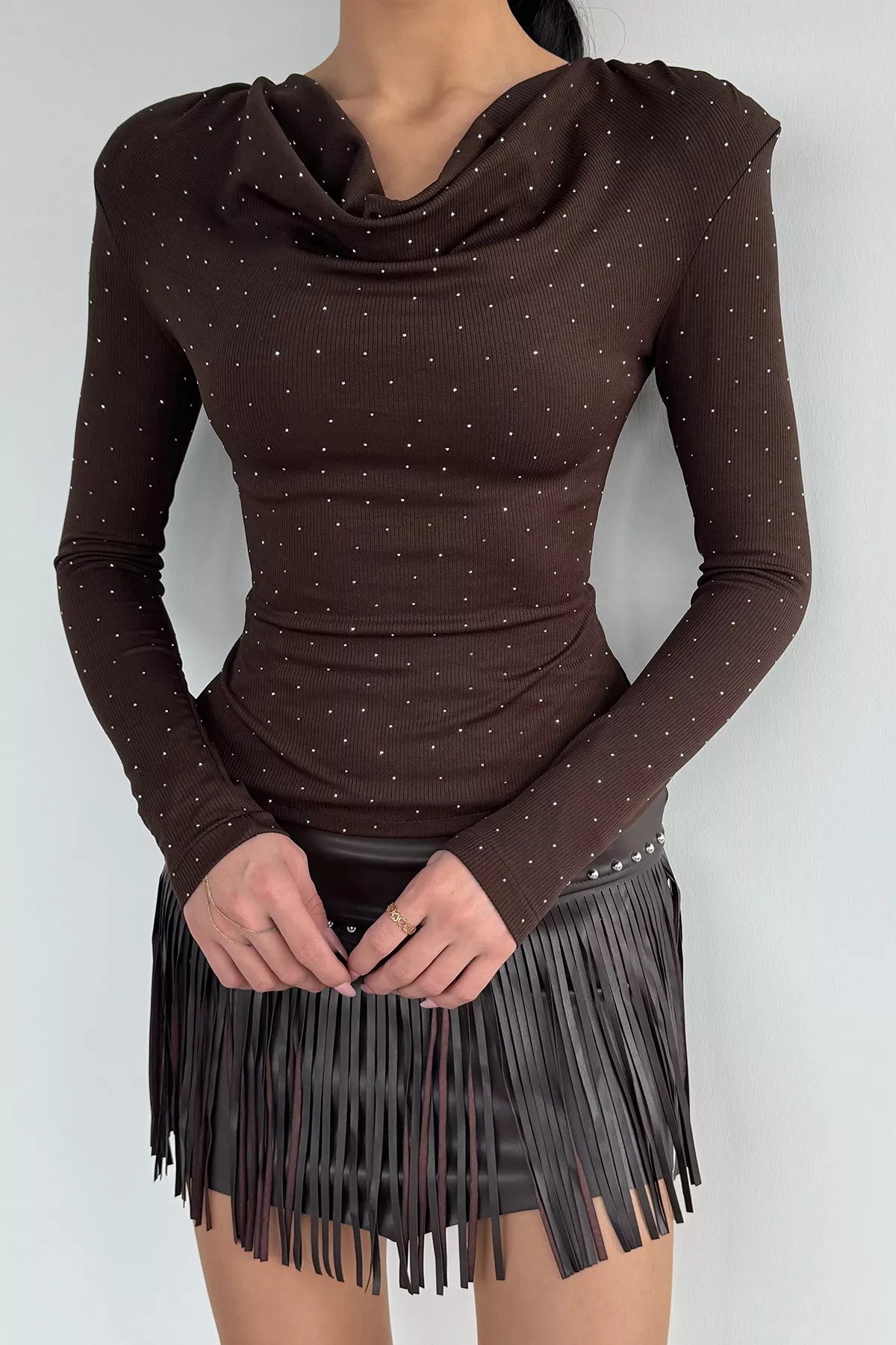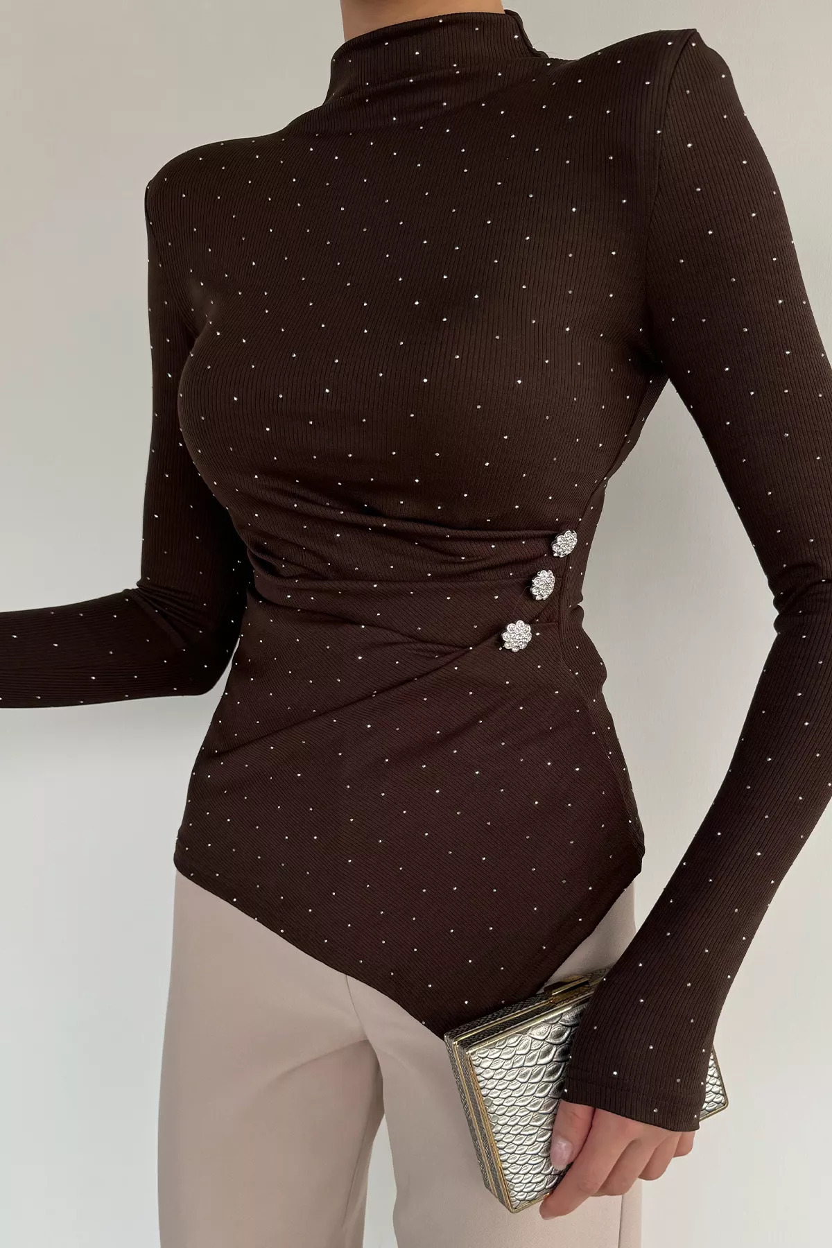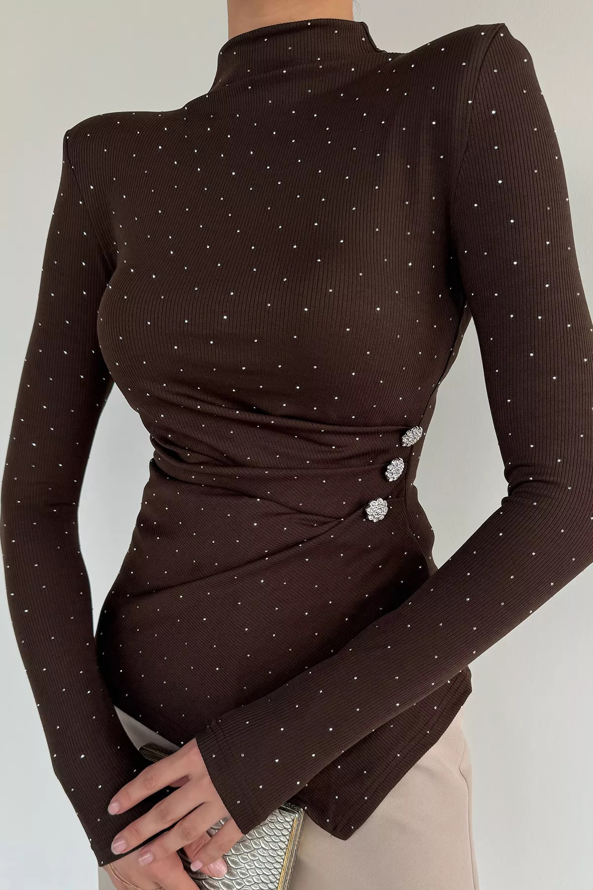 Kahve Kadın Dik Yaka Omuz Vatkalı Taşlı Bluz Kahve Kadın Dik Yaka Omuz Vatkalı Taşlı Bluz ZP-00019258 42