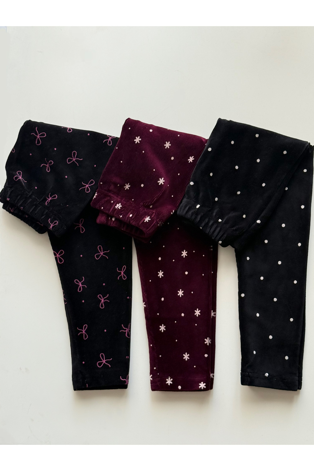 Kız Çocuk Fitilli Kadife %100 Pamuk Desenli 3'lü Takım Tayt Seti Kız Çocuk Fitilli Kadife %100 Pamuk Desenli 3'lü Takım Tayt Seti d.takımkadife 2-3 Yaş
