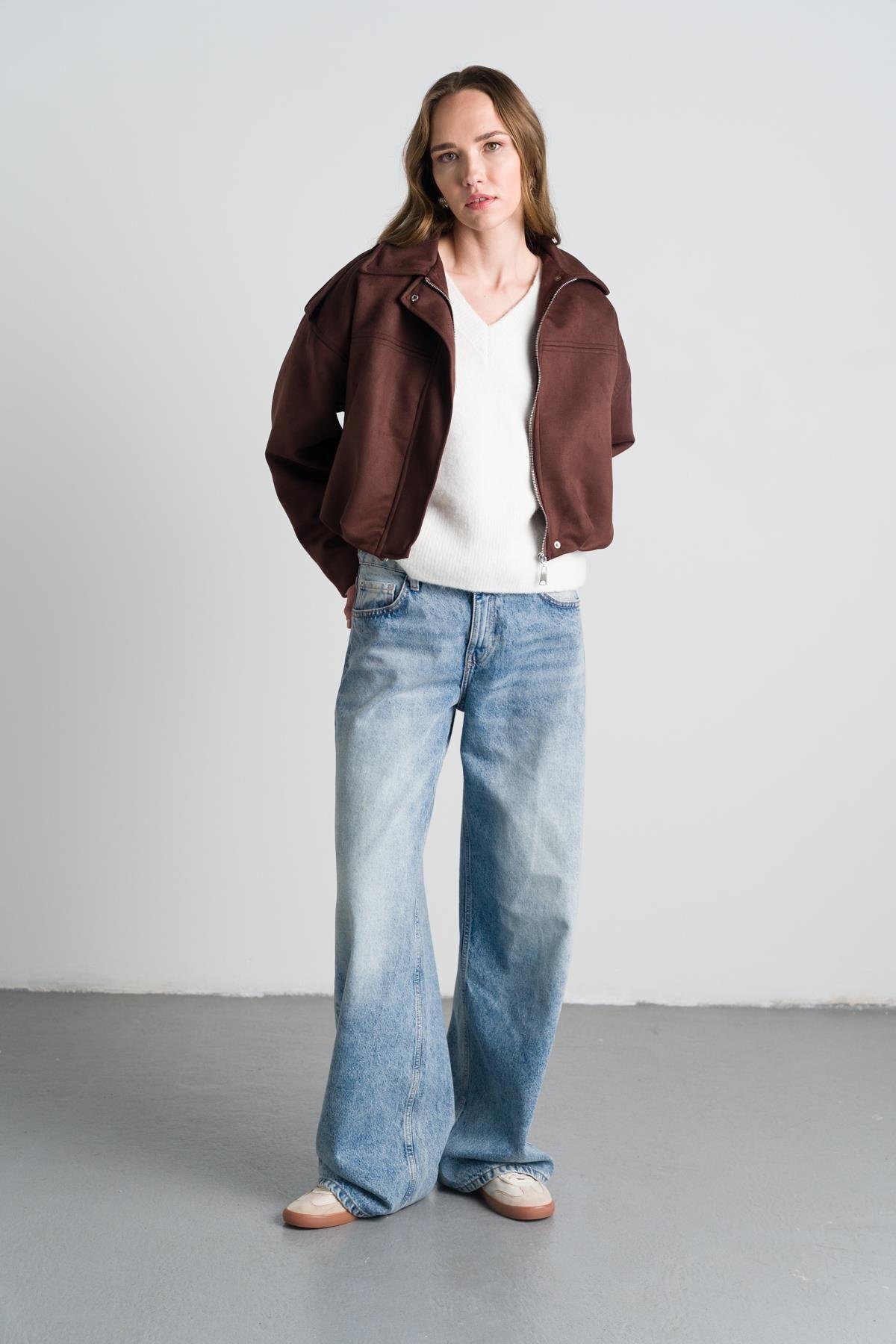 Kahverengi Verev Kesim Blazer Ceket Kahverengi Verev Kesim Blazer Ceket TXA0BC86A846 42