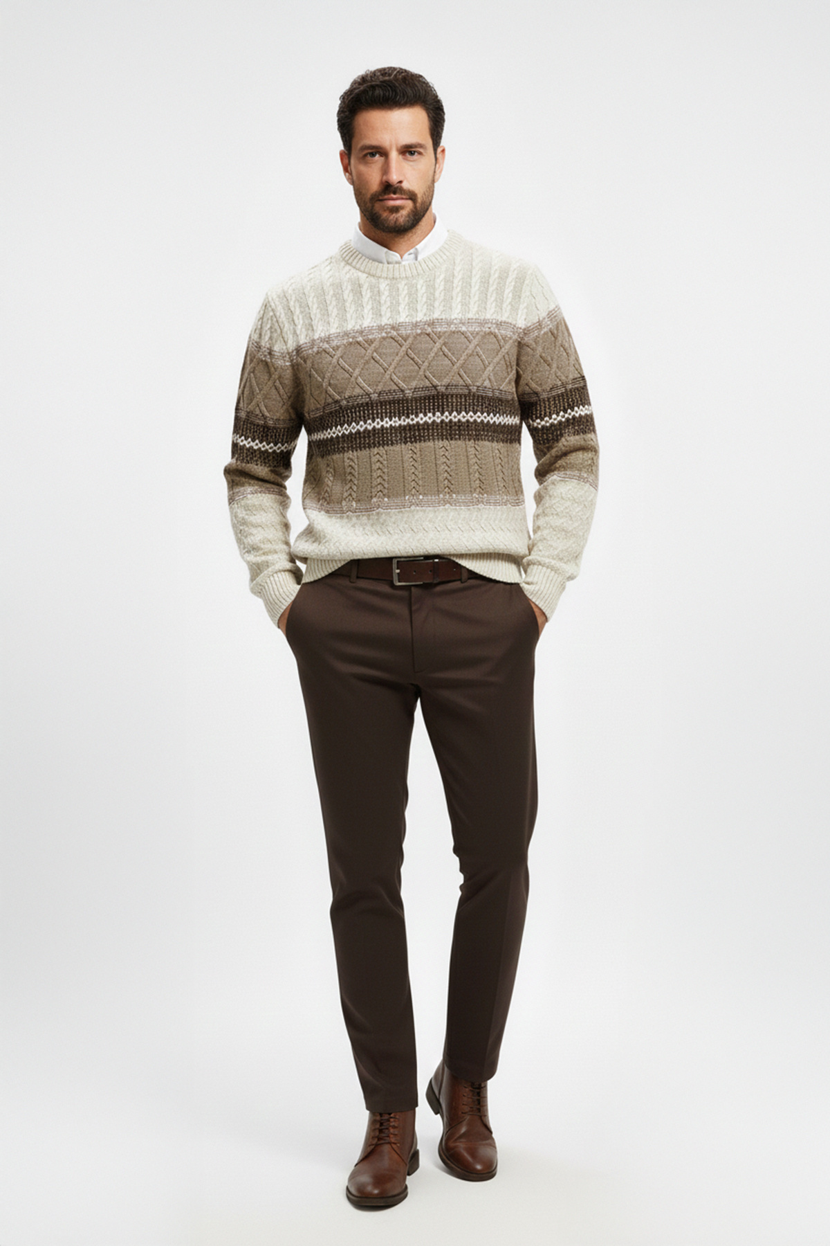 Erkek Bisiklet Yaka Desenli Kalın Triko Kazak Erkek Bisiklet Yaka Desenli Kalın Triko Kazak 221-15 4XL