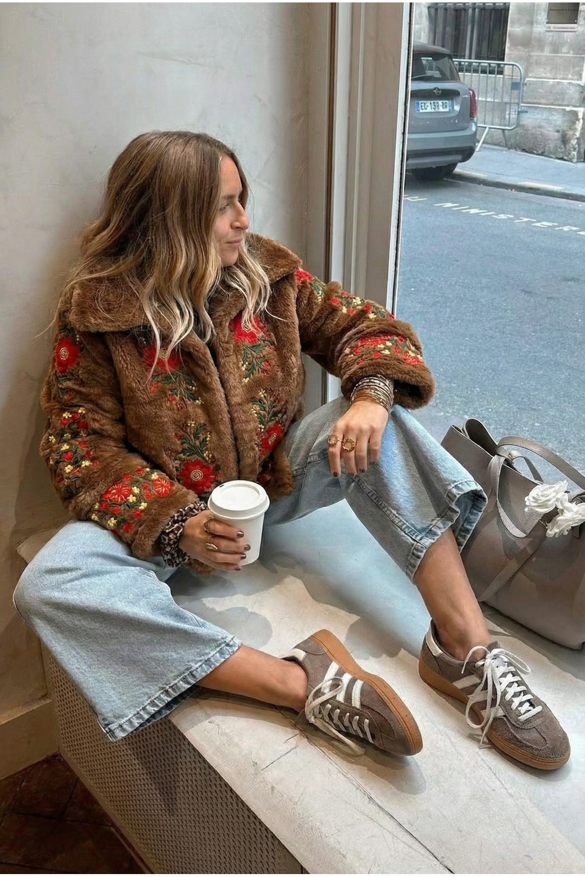 Kahverengi Nakışlı Vintage Suni Kürk Ceket Kahverengi Nakışlı Vintage Suni Kürk Ceket 6176 L