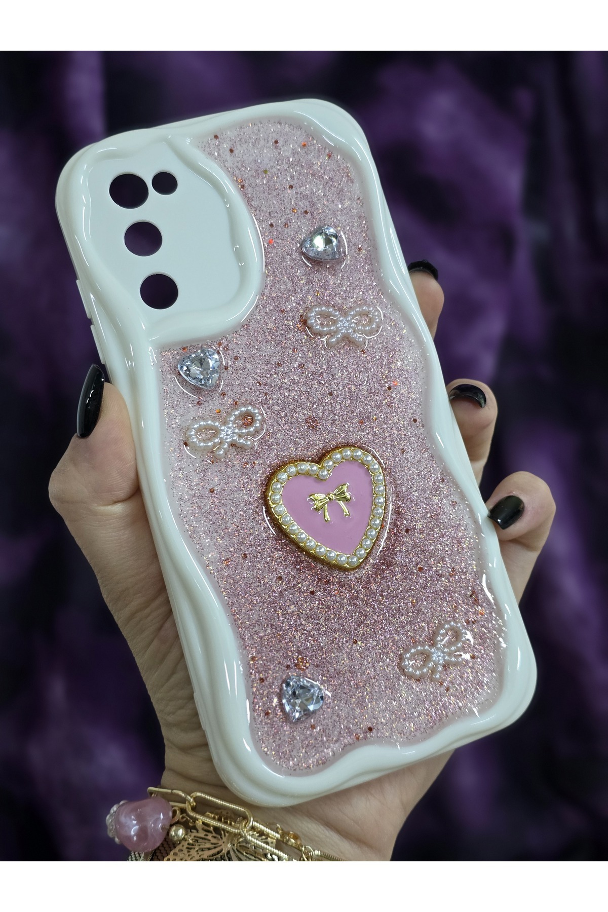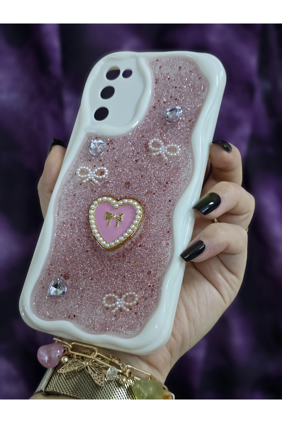 Samsung Galaxy S20 FE Uyumlu Kalpli Pembe Simli İnci ve Kurdele Detaylı Şık Telefon Kılıfı Samsung Galaxy S20 FE Uyumlu Kalpli Pembe Simli İnci ve Kurdele Detaylı Şık Telefon Kılıfı S20FEmagic تک سایز