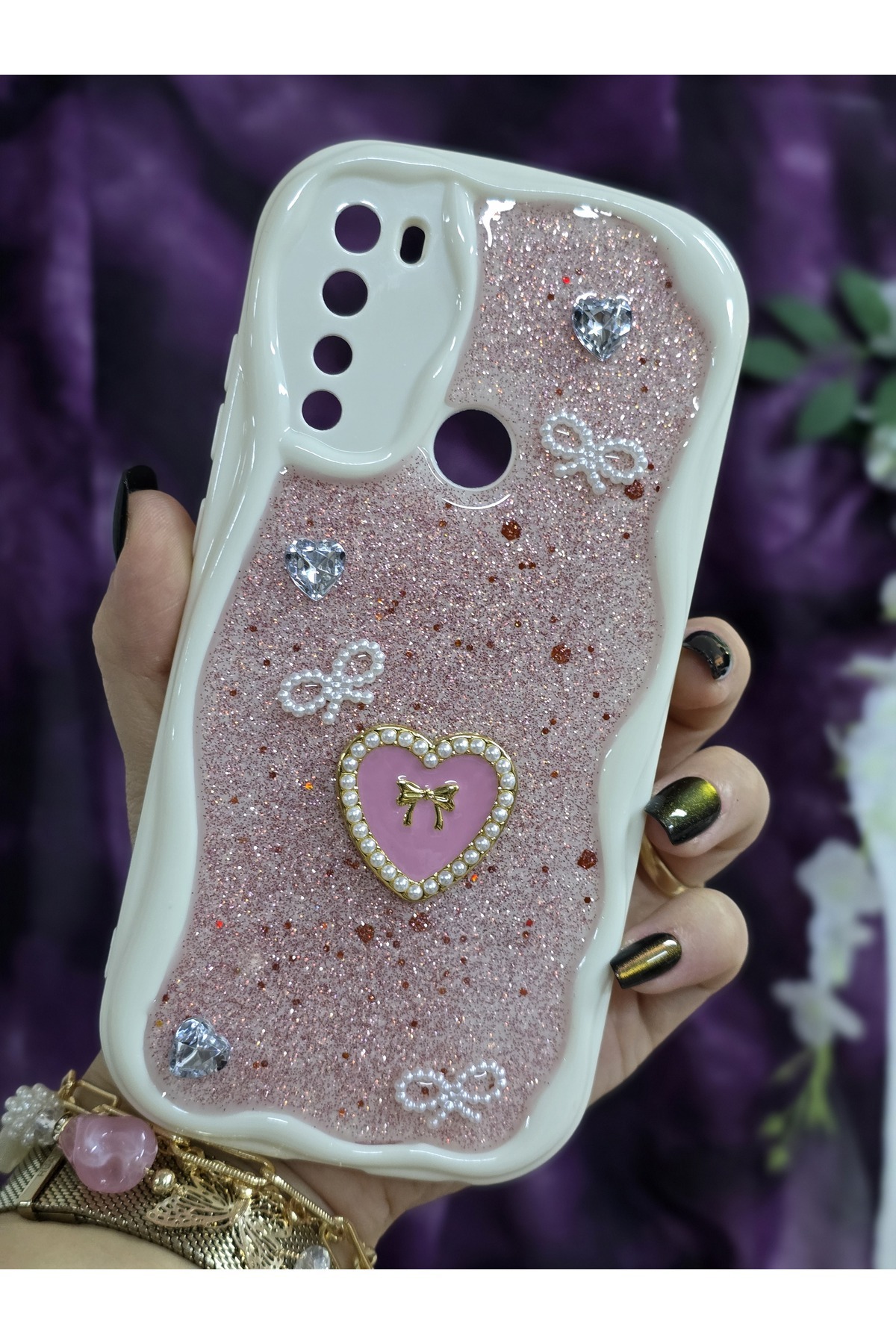 Xiaomi Redmi Note 8 Uyumlu Kalpli Pembe Simli İnci ve Kurdele Detaylı Şık Telefon Kılıfı Xiaomi Redmi Note 8 Uyumlu Kalpli Pembe Simli İnci ve Kurdele Detaylı Şık Telefon Kılıfı magicfigürnote8 تک سایز