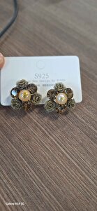 Haki Yeşil Kahverengi Taşlı Gül Figürlü Küpe Haki Yeşil Kahverengi Taşlı Gül Figürlü Küpe 25H136 تک سایز