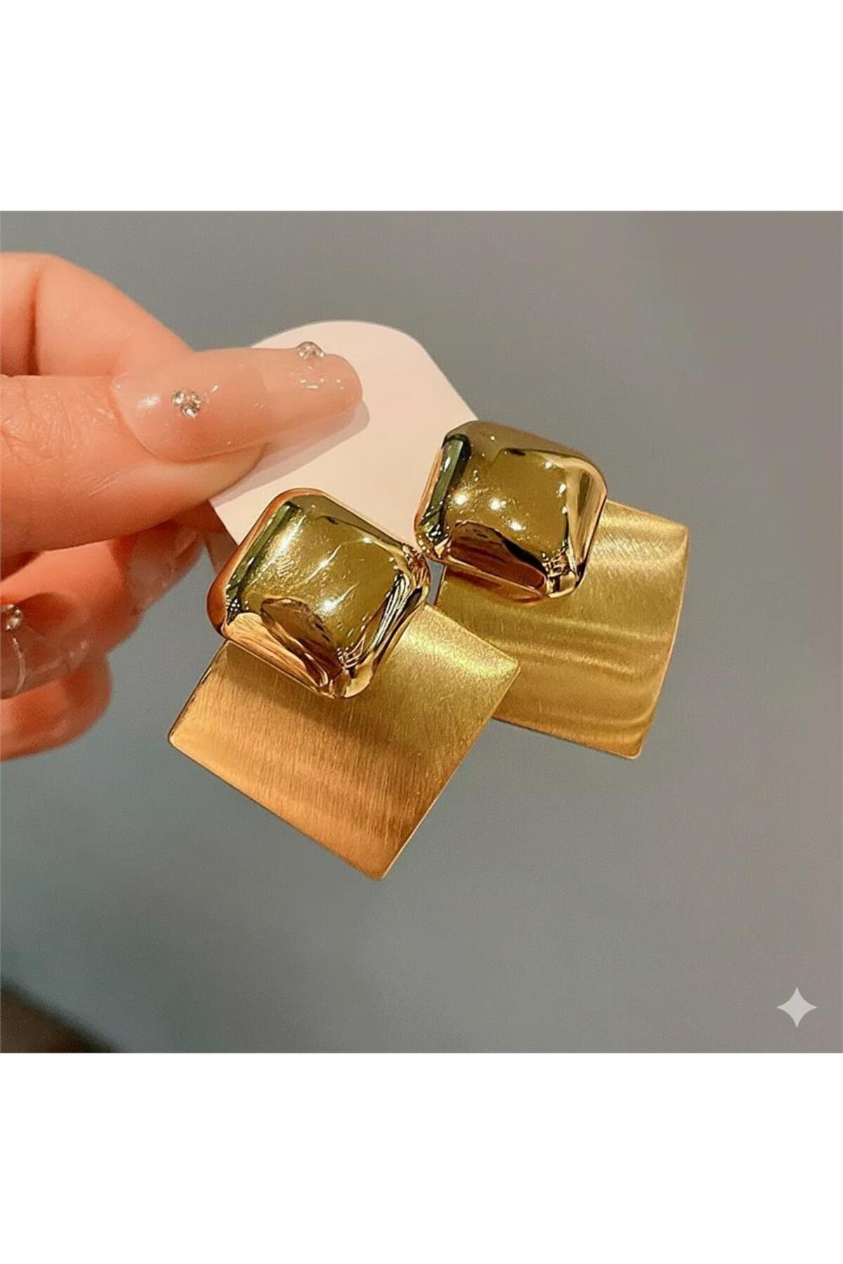 Gold Kare Plaka ve Bombeli Metal Küpe Gold Kare Plaka ve Bombeli Metal Küpe 25K078 تک سایز