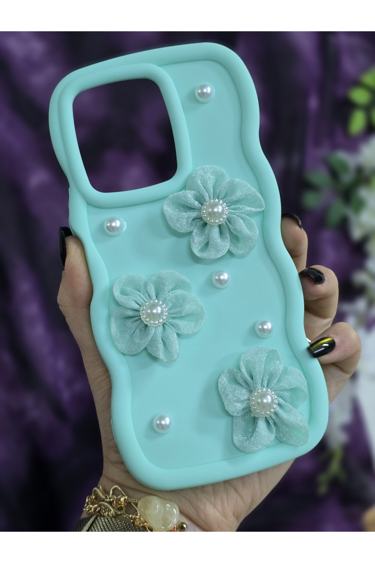 Vivo Y35 Uyumlu Su Yeşili İnci & Tül Çiçekli Şık Telefon Kılıfı Vivo Y35 Uyumlu Su Yeşili İnci & Tül Çiçekli Şık Telefon Kılıfı vivoy22Smgc تک سایز