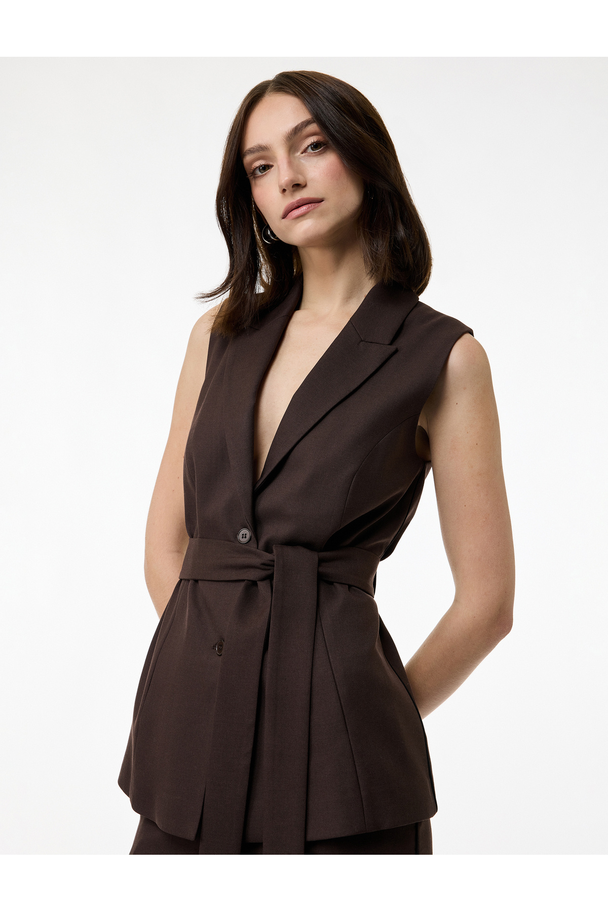 X Sibil Çetinkaya - Düğmeli V Yaka Peplum Blazer Yelek X Sibil Çetinkaya - Düğmeli V Yaka Peplum Blazer Yelek 6WAK20027PW 42