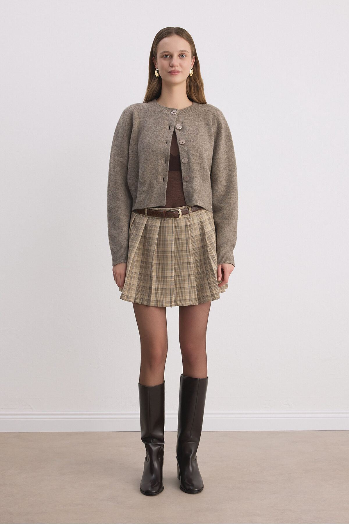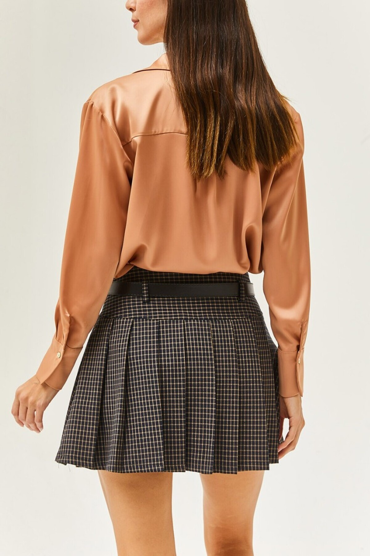 Astarlı Kemer Dahil Kareli Pileli Şort Mini Etek Astarlı Kemer Dahil Kareli Pileli Şort Mini Etek Minietek01 L