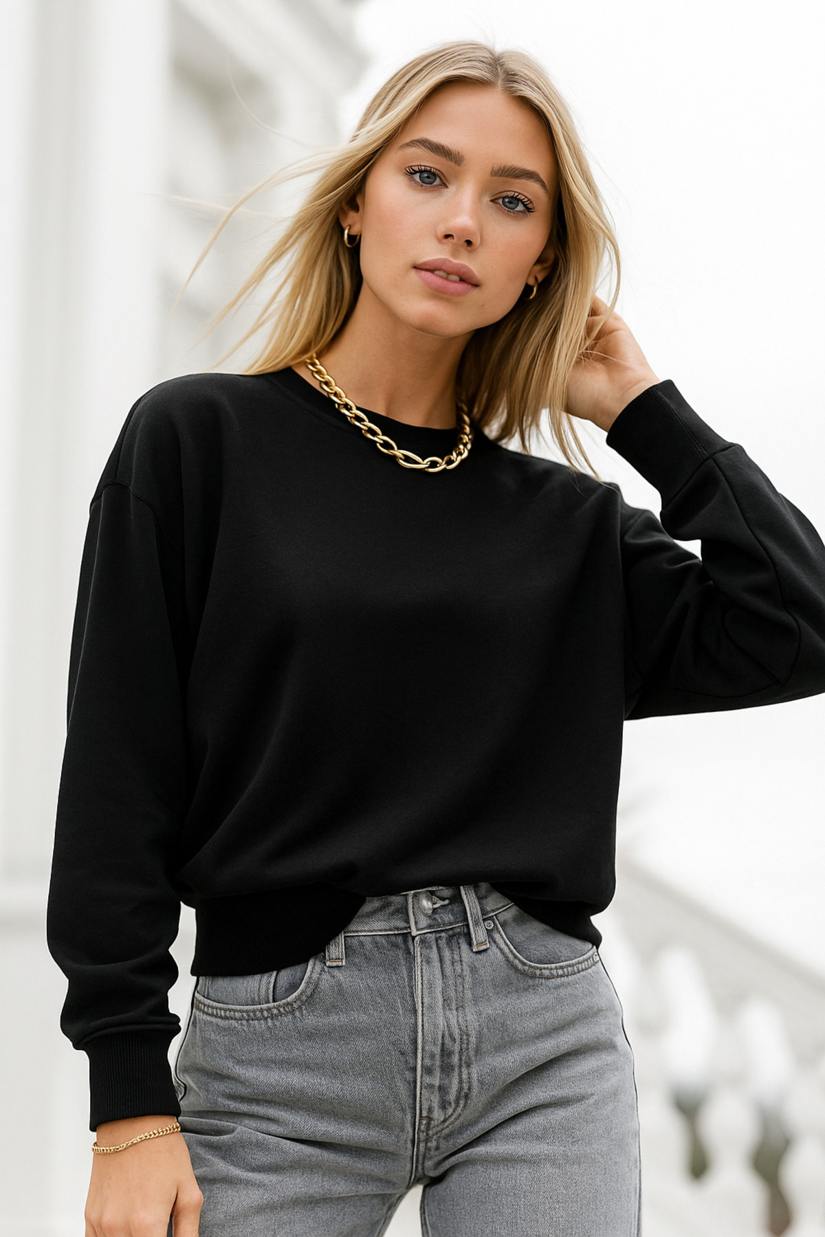 Kadın Siyah Pamuklu İnterlock Oversize Sweatshirt Kadın Siyah Pamuklu İnterlock Oversize Sweatshirt RBSWT-1 L