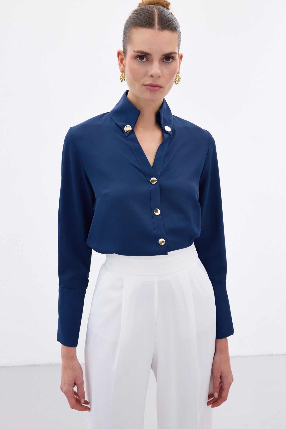 Çıt Çıt Detaylı Gömlek - İndigo Çıt Çıt Detaylı Gömlek - İndigo STN139KGO1761 42