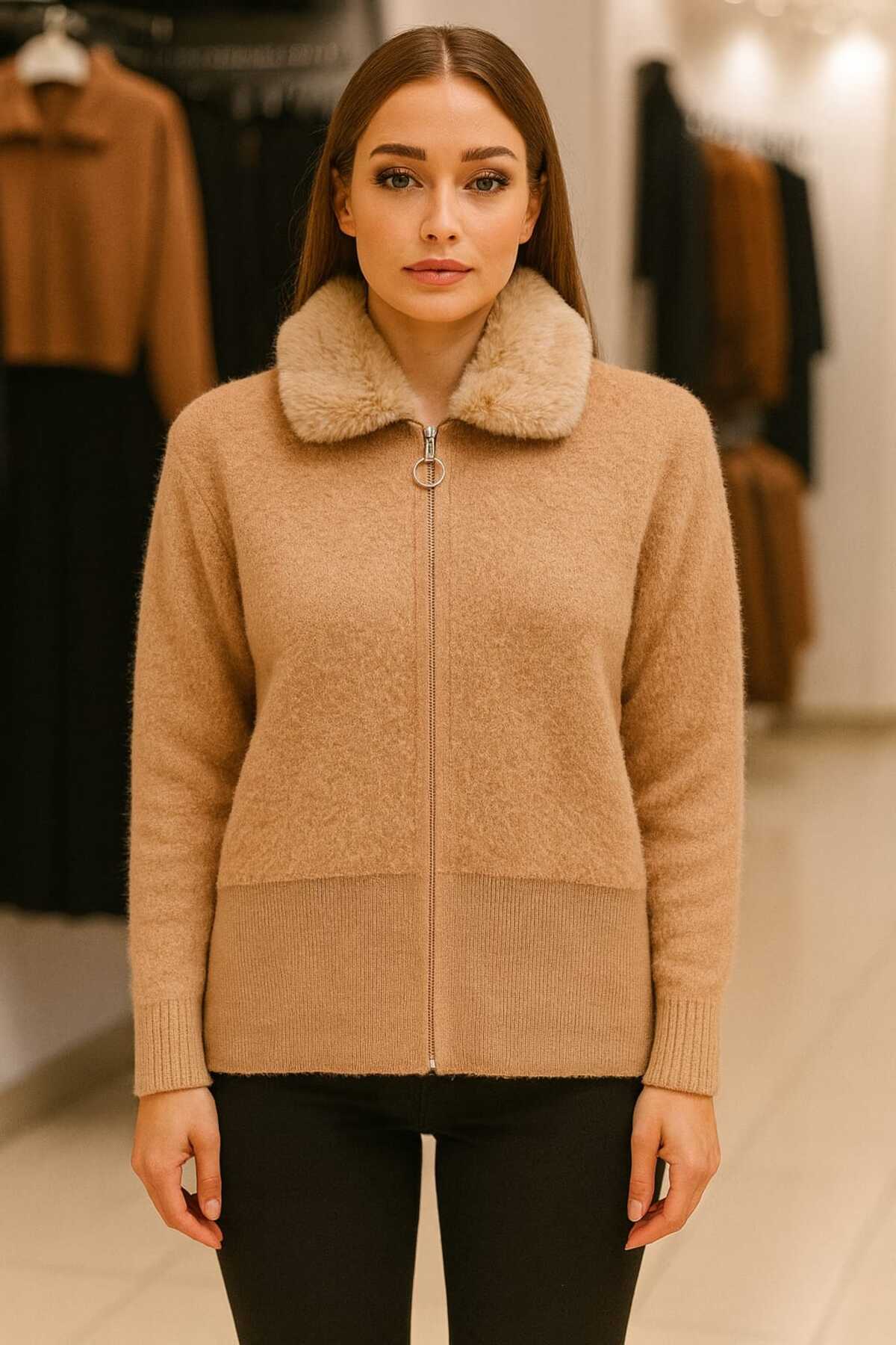 Peluş Yaka Triko Hırka Peluş Yaka Triko Hırka 25577 Standart
