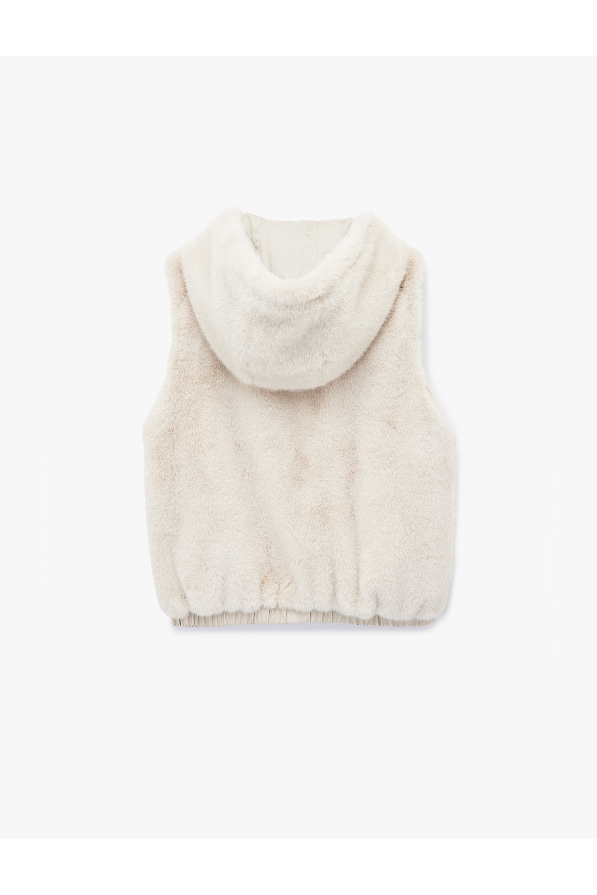Kolsuz Kapüşonlu Fermuarlı Peluş Yelek Kolsuz Kapüşonlu Fermuarlı Peluş Yelek 6WAK20107EW 42