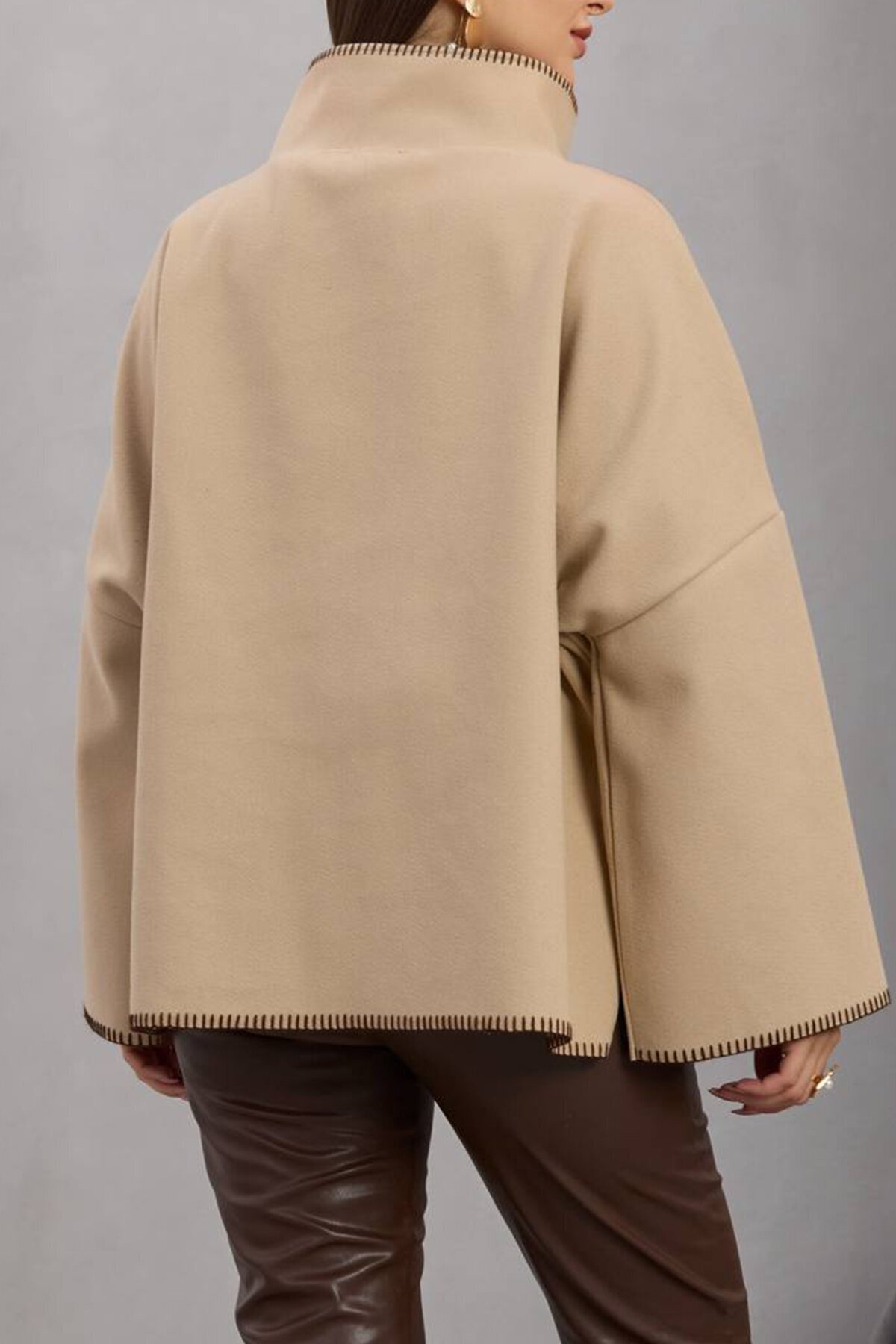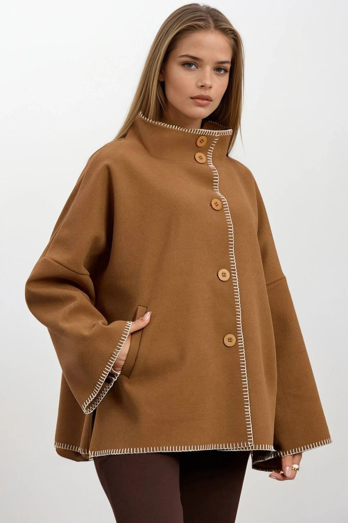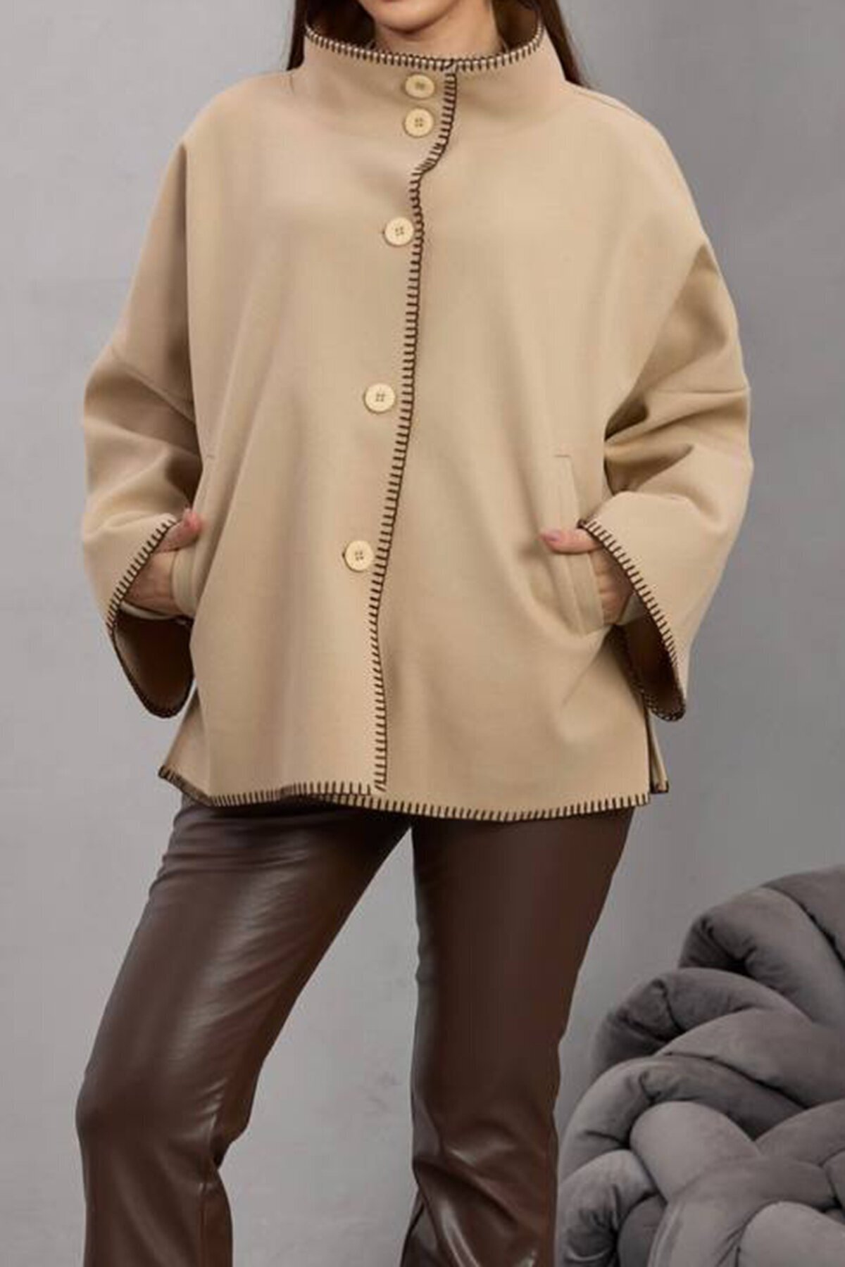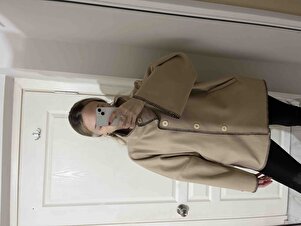 Kadın Bej Düğmeli Geniş Kollu Kontrast Dikişli Yırtmaçlı Kaban Vs01673 Kadın Bej Düğmeli Geniş Kollu Kontrast Dikişli Yırtmaçlı Kaban Vs01673 VS01673 L